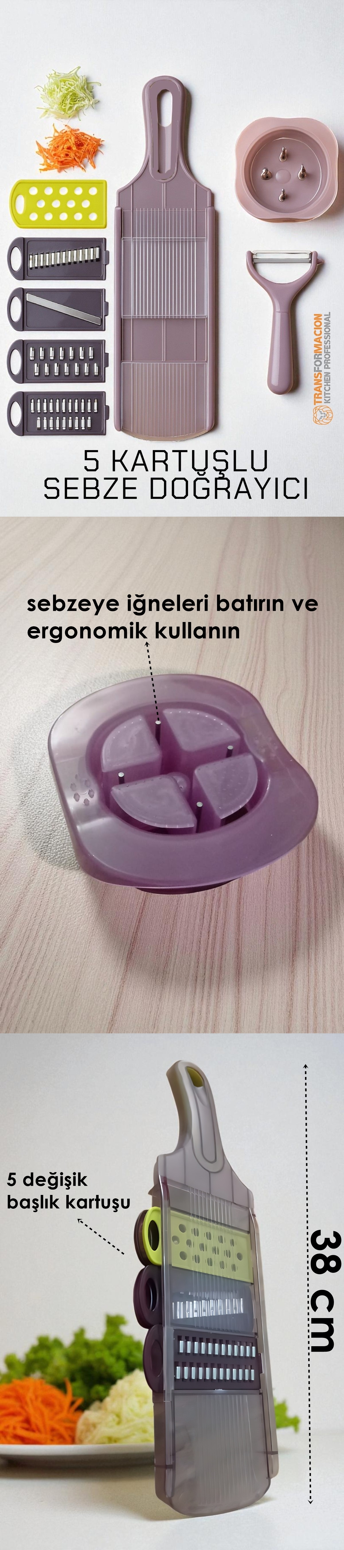 5 Başlıklı Dikey Sebze Doğrayıcı & Rende Seti – Hızlı, Güvenli ve Çok Yönlü - Tek setle 5 farklı kesim, mutfakta tam kontrol! Kes, rendele, sabitle – mutfakta hız ve güvenlik artık seninle!