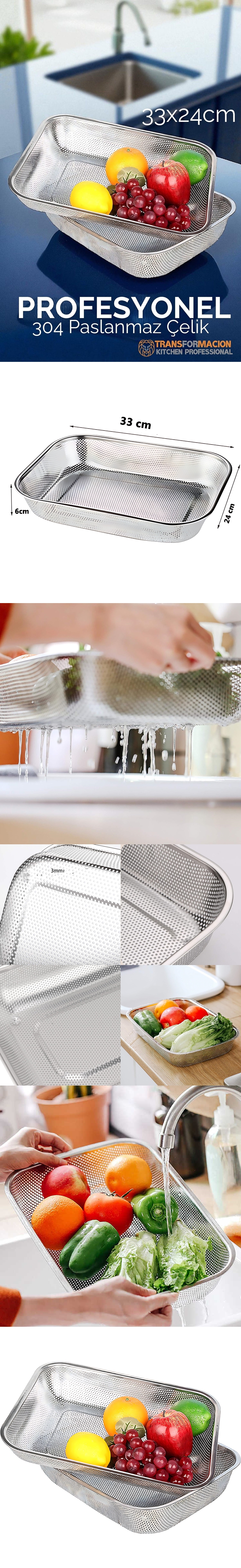 HSNET Mink Paslanmaz Çelik Dikdörtgen Süzgeç Sepeti, mutfakta günlük işlerinizi kolaylaştırmak için tasarlanmış çok yönlü ve dayanıklı bir üründür.