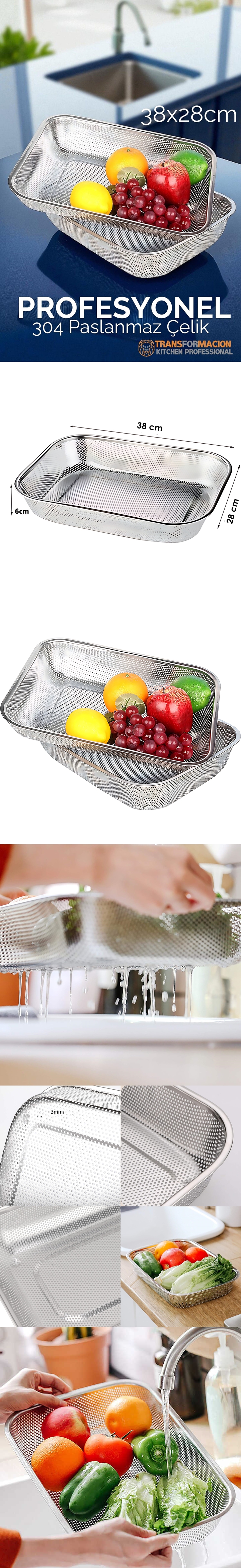 HSNET Mink Paslanmaz Çelik Dikdörtgen Süzgeç Sepeti, mutfakta günlük işlerinizi kolaylaştırmak için tasarlanmış çok yönlü ve dayanıklı bir üründür.