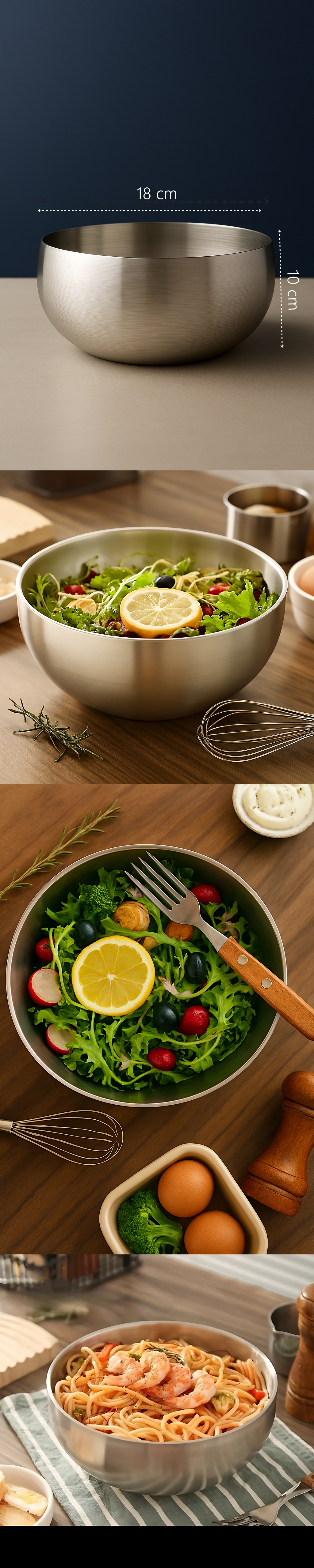 Mutfakta hem karıştırma hem de sunum için ideal olan bu çift cidarlı INOX çelik kase, ısıyı dışa vermeyen yapısıyla hem sıcak hem soğuk içerikler için mükemmel bir çözüm sunar.