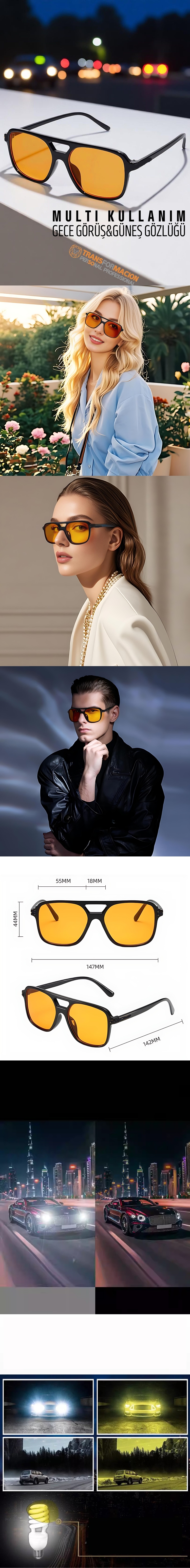 * Unisex Tasarım: Siyah çerçeve ve sarı cam kombinasyonu, hem kadınlar hem erkekler için uygundur.