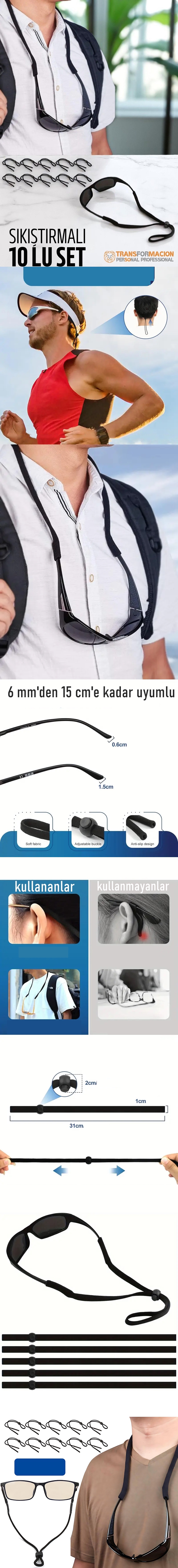 ÖNE ÇIKAN ÖZELLİK : Gözlüğünüzün ucuna(şakak kısmına gelen yer) KORDON ucundaki kısım geçirilerek kullanılır ve burayı sıkıca kavrar