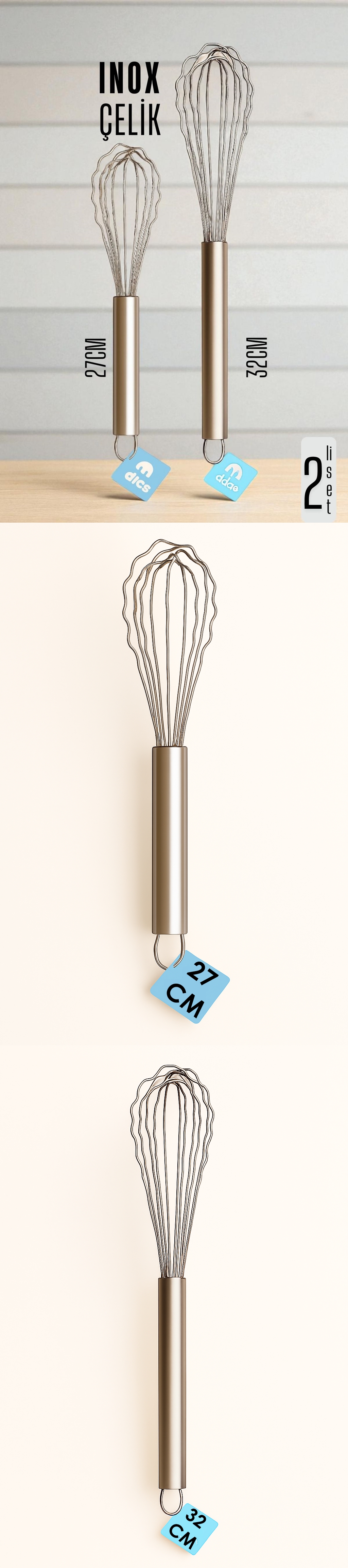 HSNET Inox Çelik Çırpıcı + Uzun Kısa 2 li Çırpıcı Seti
