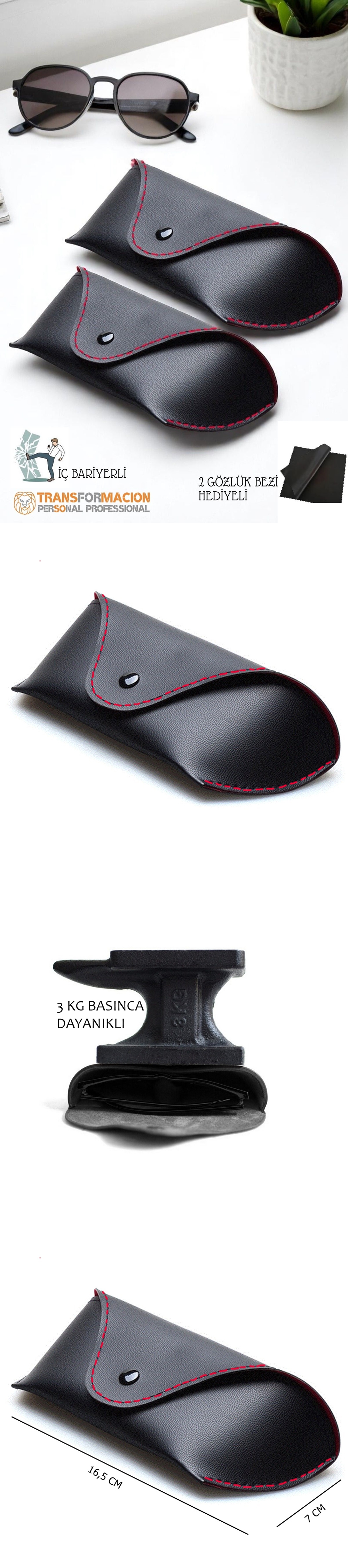 "Deri gözlük kılıfı, gözlüklerinizi çizilmelere ve darbelere karşı koruyarak uzun ömürlü kullanım sunar. Pu deri gözlük kabı, estetik  dikiş detayları ile şık bir görünüm sağlarken, korumalı gözlük kılıfı iç bariyer desteği sayesinde maksimum koruma sunar!"
