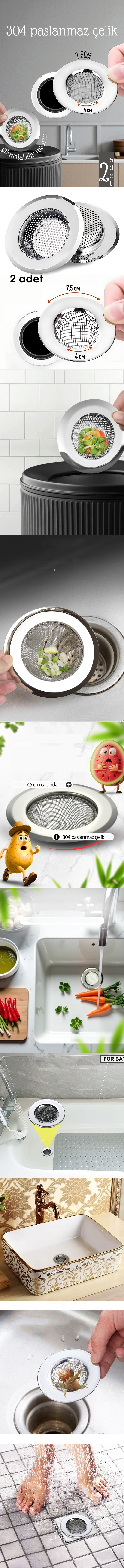 HSNET Lavabo Süzgeci - 7.5 cm Çap 2 Lİ SET Gider Sügeci Lavabo Süzgeci