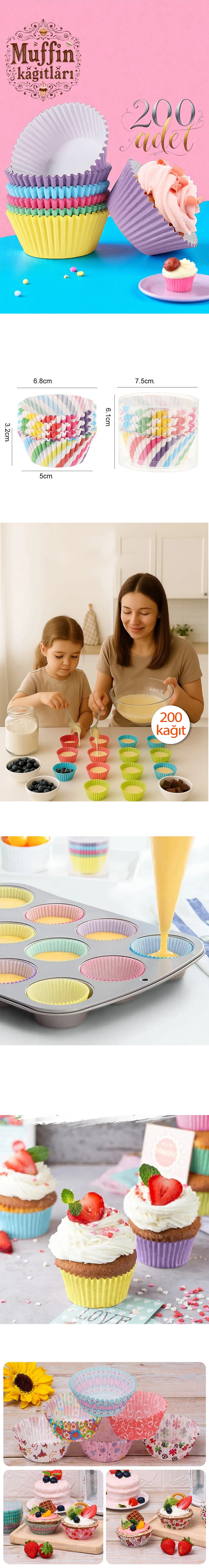 - Paket içeriği: 200 adet renkli muffin kağıdı