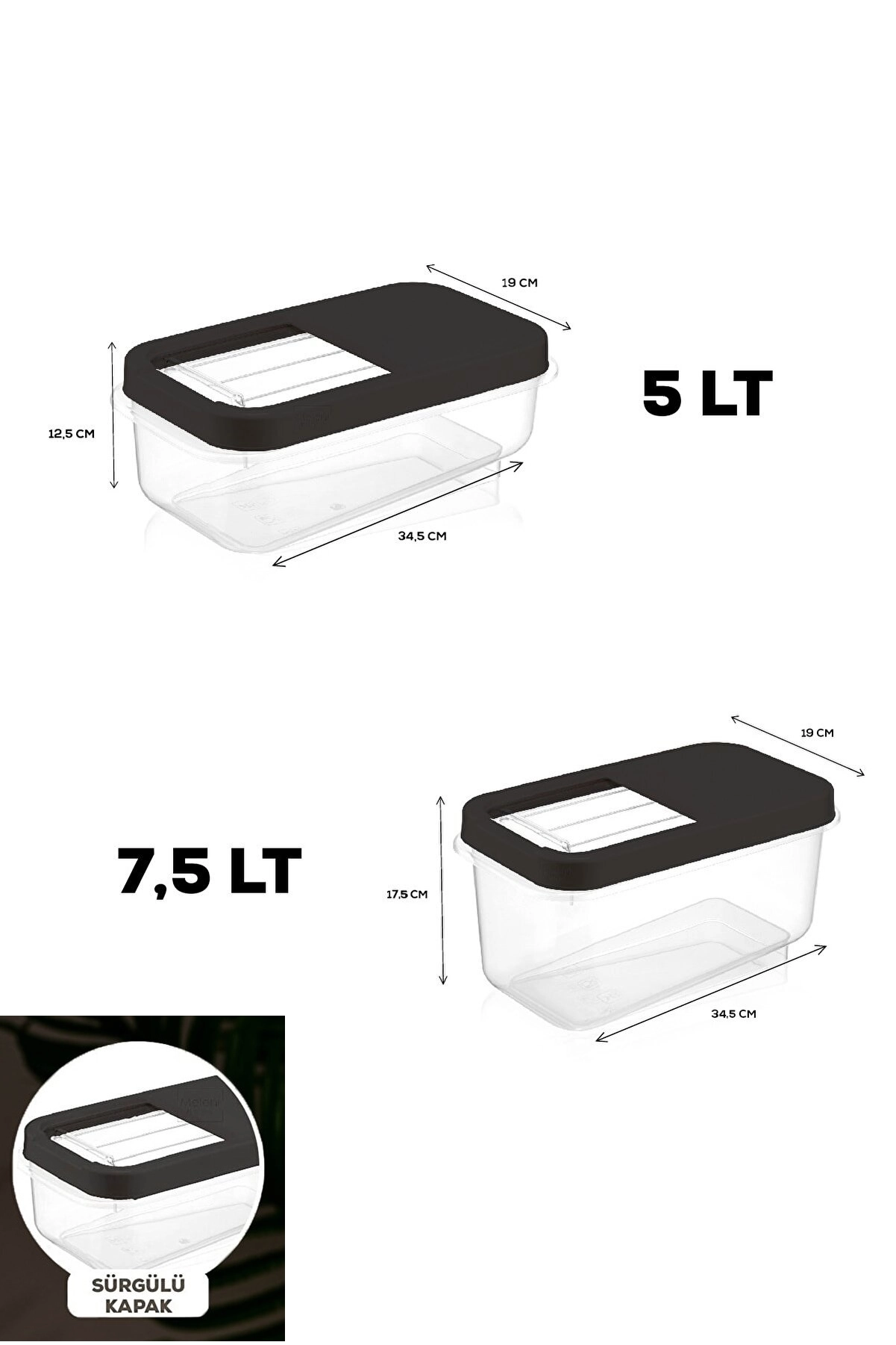 ÖLÇÜLER : 5 litre Ürün Ölçüsü 34,5x19x12,5 cm ve 7,5 litreden Ürün Ölçüsü 34,5x19x17,5 cm oluşan 2 li set
