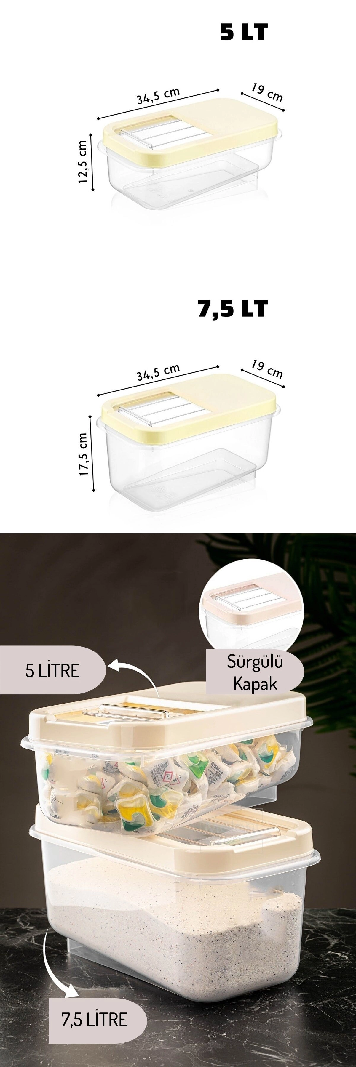 ÖLÇÜLER : 5 litre Ürün Ölçüsü 34,5x19x12,5 cm ve 7,5 litreden Ürün Ölçüsü 34,5x19x17,5 cm oluşan 2 li set