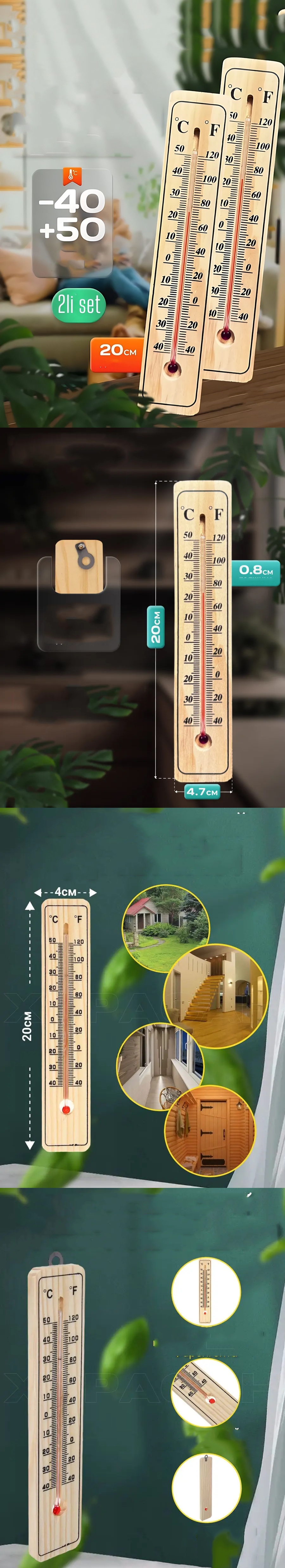 Ahşap Termometre 2’li Set – İç ve Dış Mekân Uyumlu | -40°C / +50°C Ölçüm Aralığı