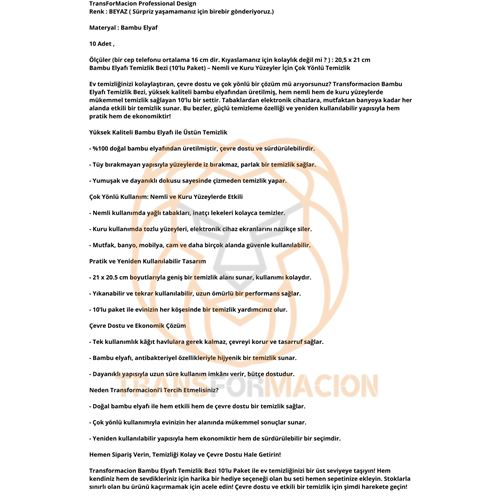 Ev temizliğinizi kolaylaştıran, çevre dostu ve çok yönlü bir çözüm mü arıyorsunuz? HSNET Bambu Elyafı Temizlik Bezi, yüksek kaliteli bambu elyafından üretilmiş, hem nemli hem de kuru yüzeylerde mükemmel temizlik sağlayan 10’lu bir settir. Tabaklardan elektronik cihazlara, mutfaktan banyoya kadar her alanda etkili bir temizlik sunar. Bu bezler, güçlü temizleme özelliği ve yeniden kullanılabilir yapısıyla hem pratik hem de ekonomiktir!