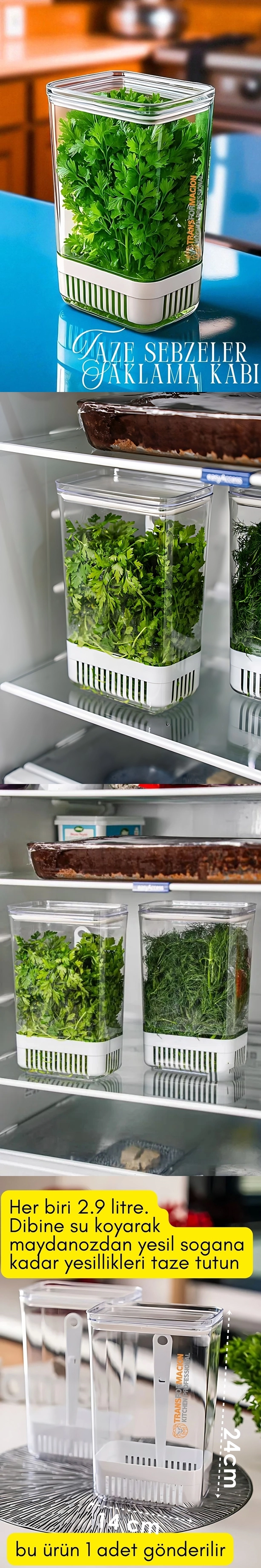HSNET Yeşillik Saklama Kabı - Taze Yeşillik İçin - Soğan Maydanoz vb Yeşillik Saklama
