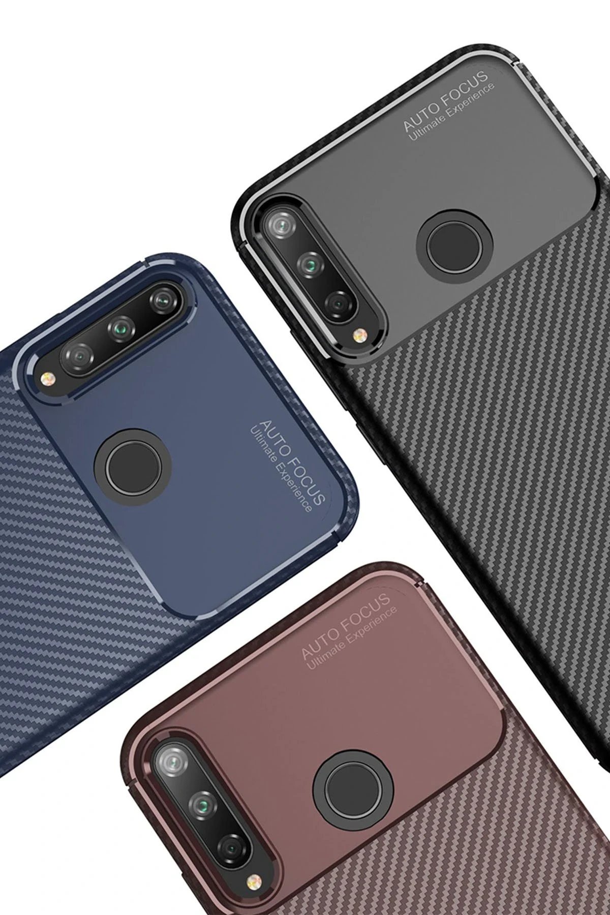 Huawei P40 Lite E Kılıf Auto Focus Karbon Kapak - Siyah-(5796)