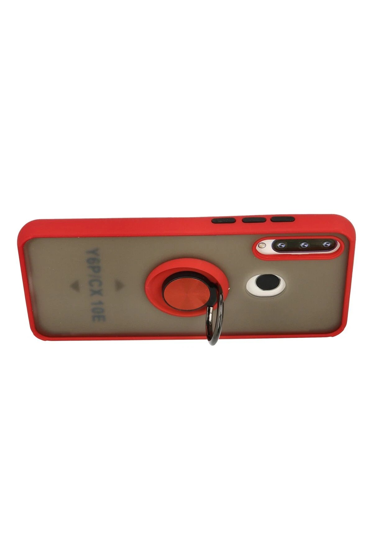 Huawei Y6P Kılıf Montreal Yüzüklü Silikon Kapak - Kırmızı-(5796)