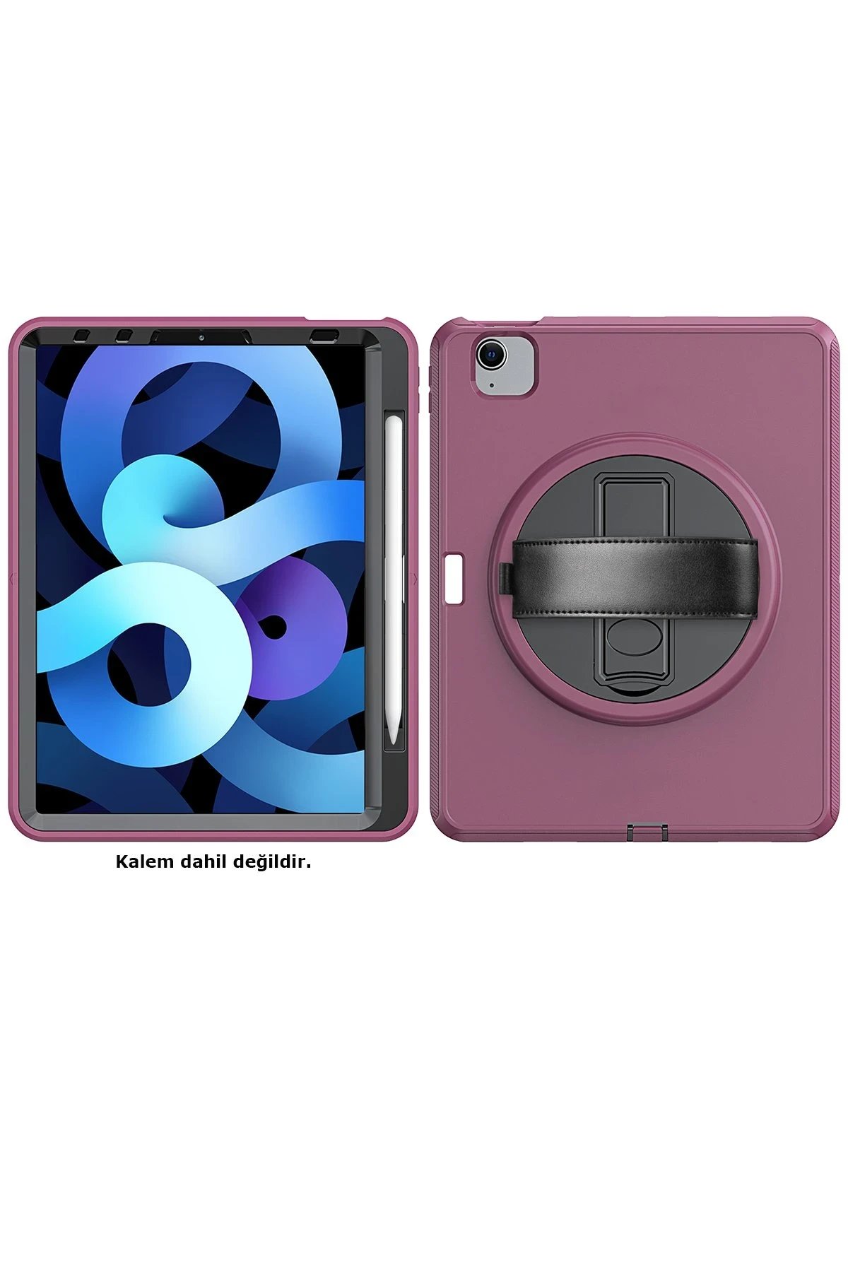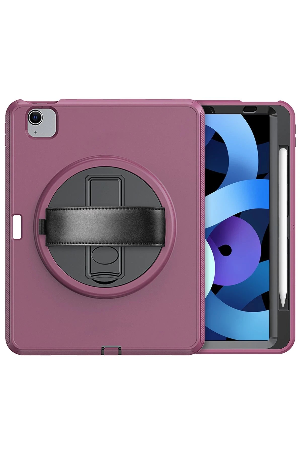 iPad 2022 10.9 (10.nesil) Kılıf Hand Strap Tablet Kılıfı - Mürdüm-(5796)