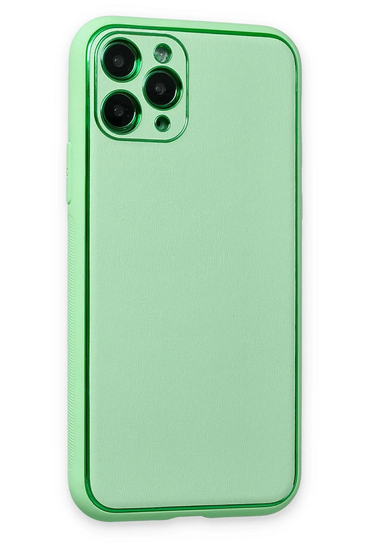iPhone 11 Pro Kılıf Coco Deri Silikon Kapak - Açık Yeşil-(5796)