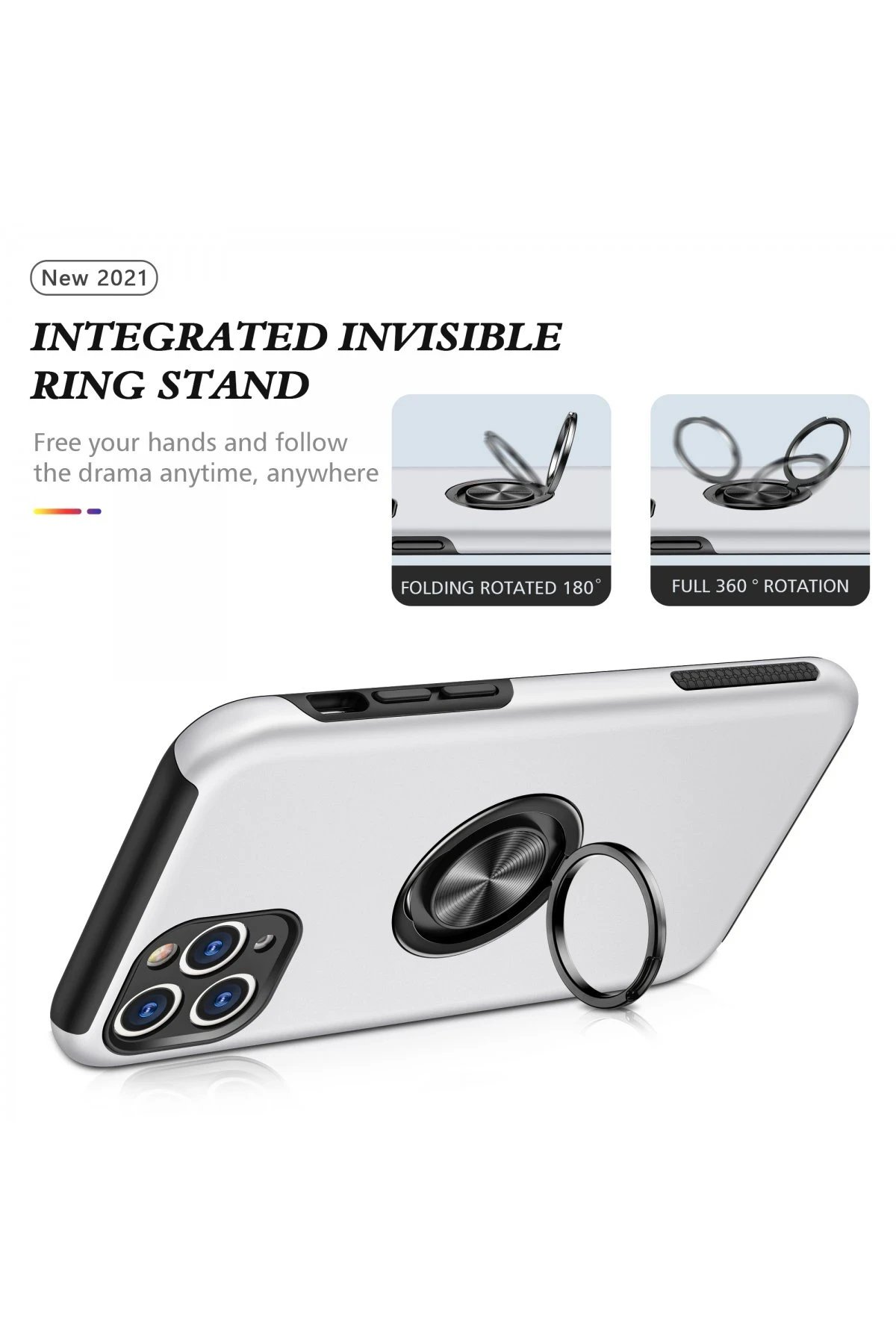 iPhone 11 Pro Max Kılıf Elit Yüzüklü Kapak - Gümüş-(5796)