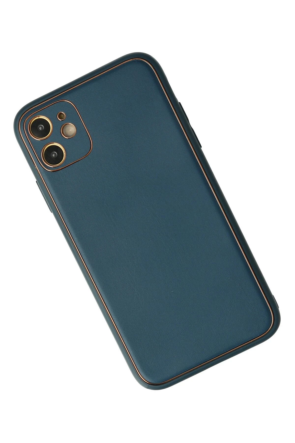 iPhone 12 Kılıf Coco Deri Silikon Kapak - Mavi-(5796)