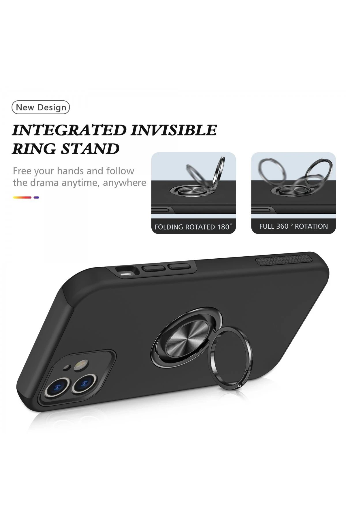 iPhone 12 Kılıf Elit Yüzüklü Kapak - Siyah-(5796)