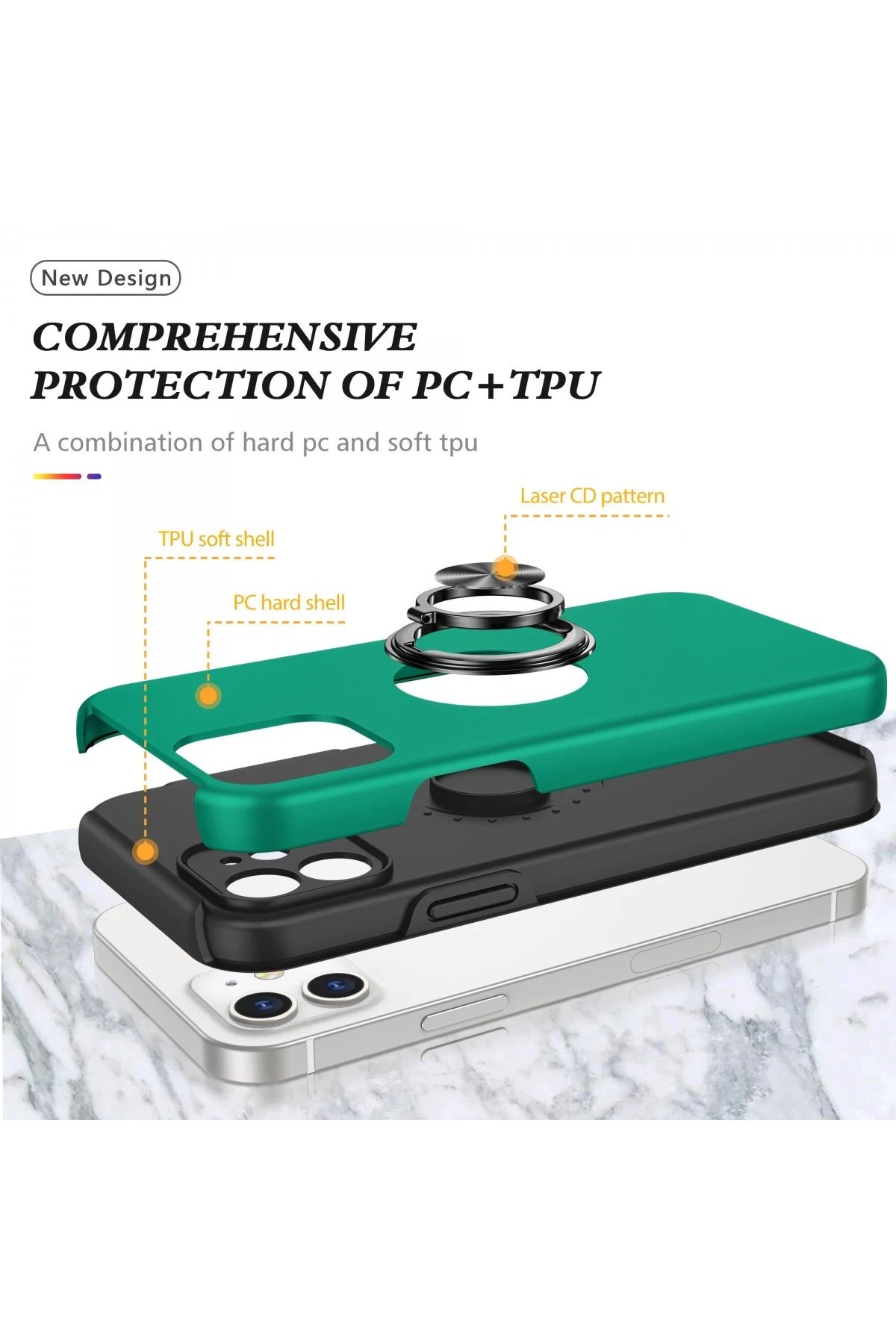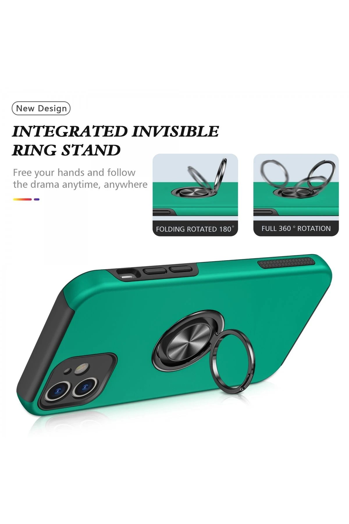iPhone 12 Kılıf Elit Yüzüklü Kapak - Yeşil-(5796)
