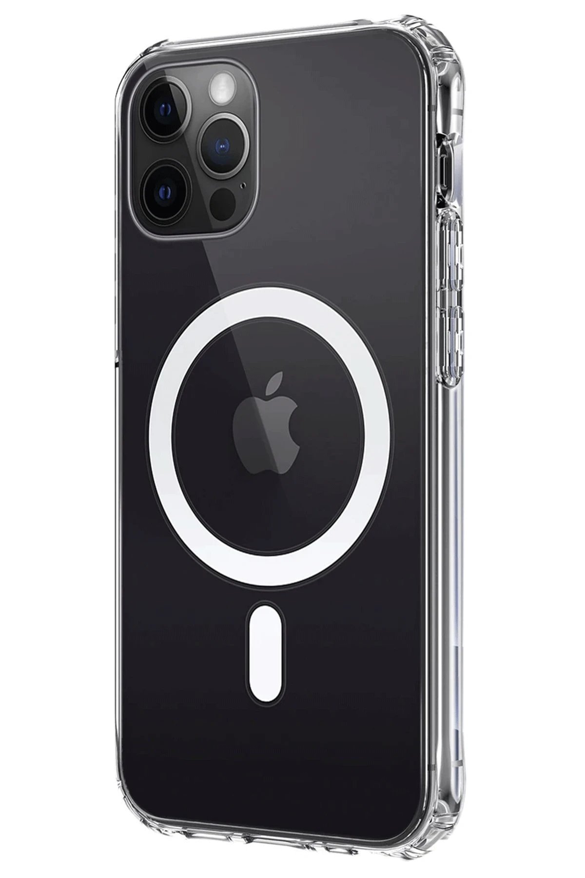 iPhone 12 Kılıf Magneticsafe Şeffaf Silikon - Şeffaf-(5796)
