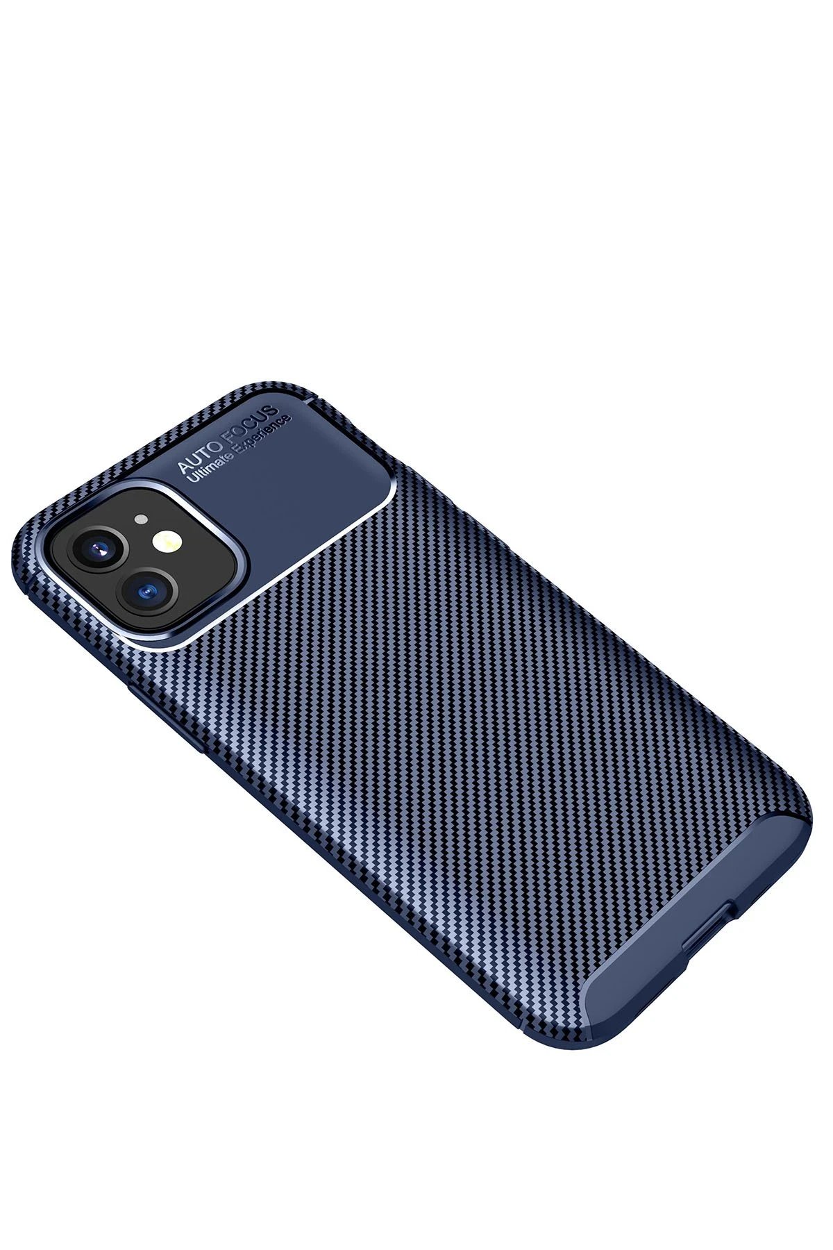 iPhone 12 Mini Kılıf Auto Focus Karbon Kapak - Lacivert-(5796)