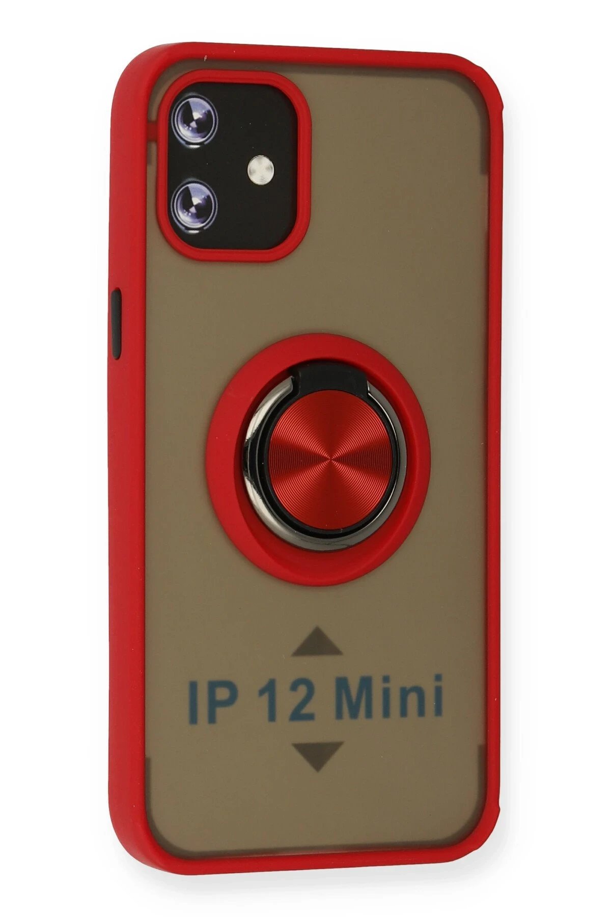 iPhone 12 Mini Kılıf Montreal Yüzüklü Silikon Kapak - Kırmızı-(5796)