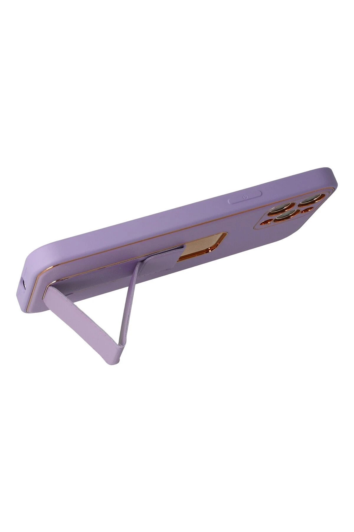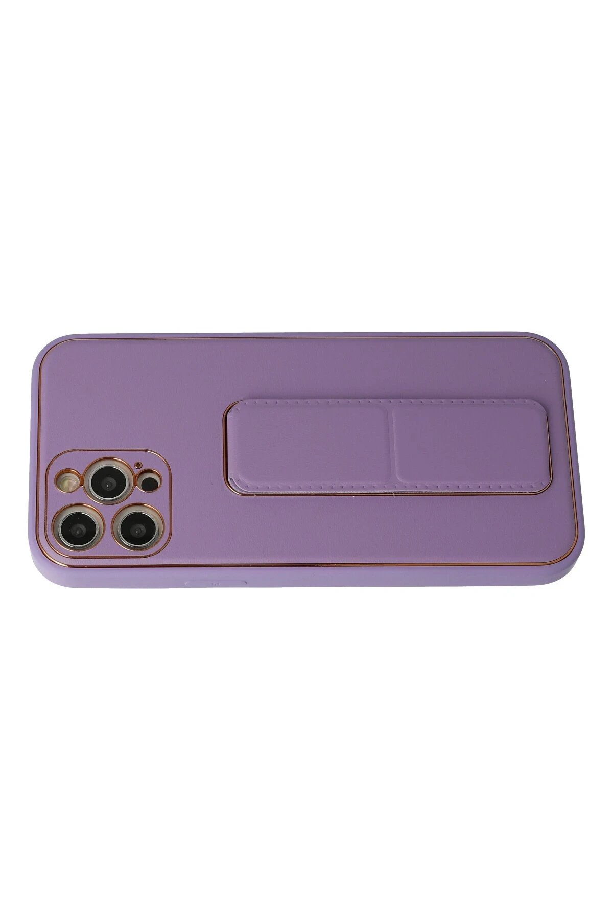 iPhone 12 Pro Kılıf Coco Deri Standlı Kapak - Lila-(5796)