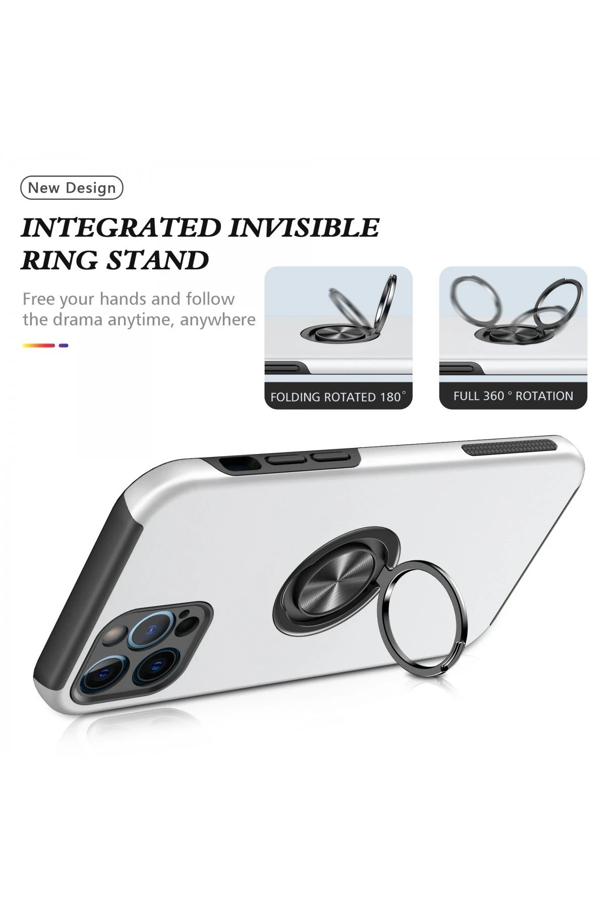 iPhone 12 Pro Kılıf Elit Yüzüklü Kapak - Gümüş-(5796)