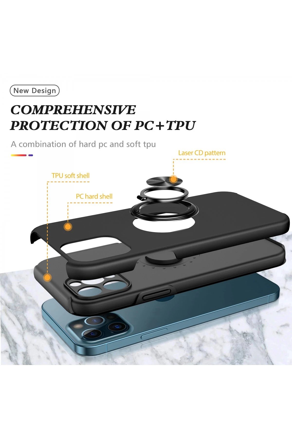 iPhone 12 Pro Kılıf Elit Yüzüklü Kapak - Siyah-(5796)