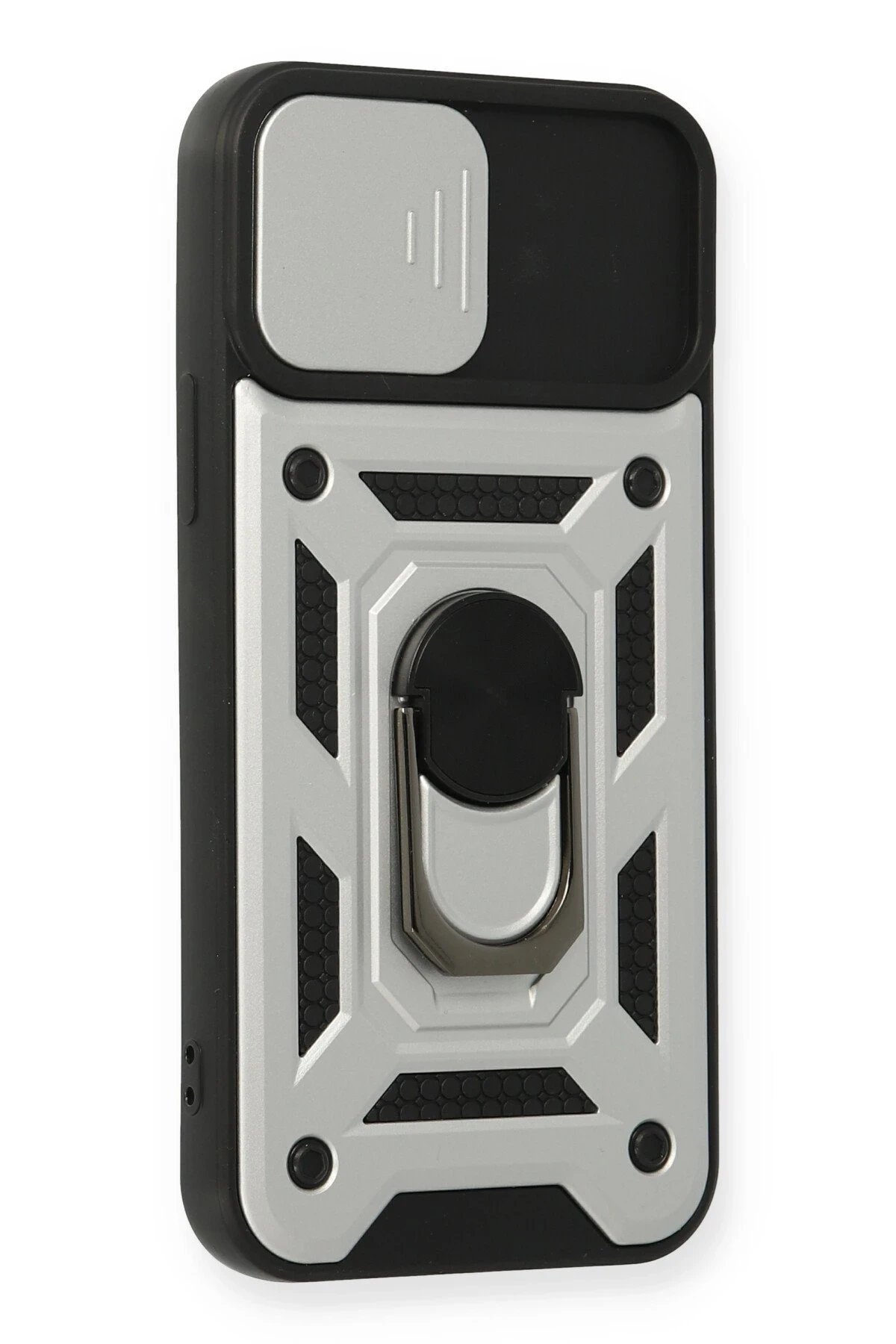 iPhone 12 Pro Kılıf Pars Lens Yüzüklü Silikon - Gümüş-(5796)