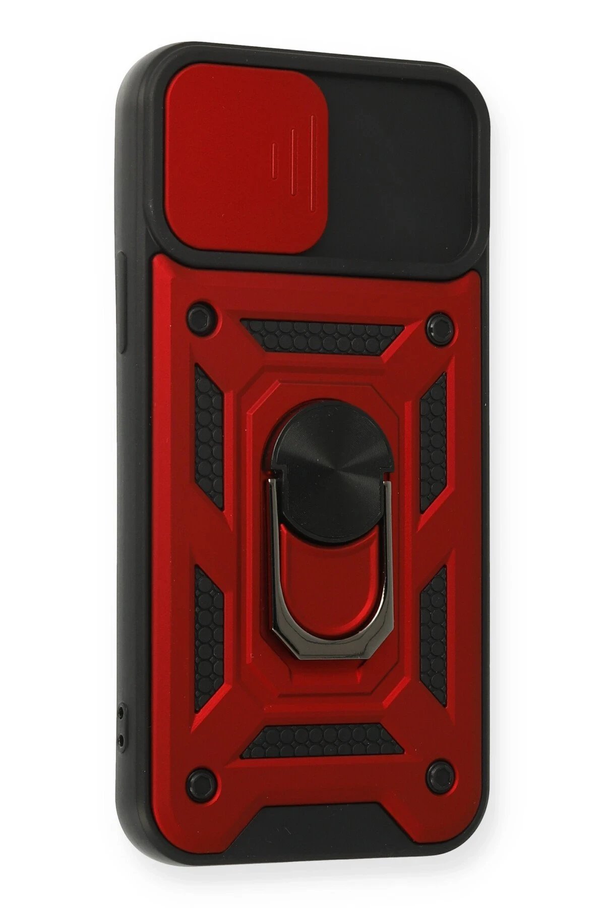 iPhone 12 Pro Kılıf Pars Lens Yüzüklü Silikon - Kırmızı-(5796)