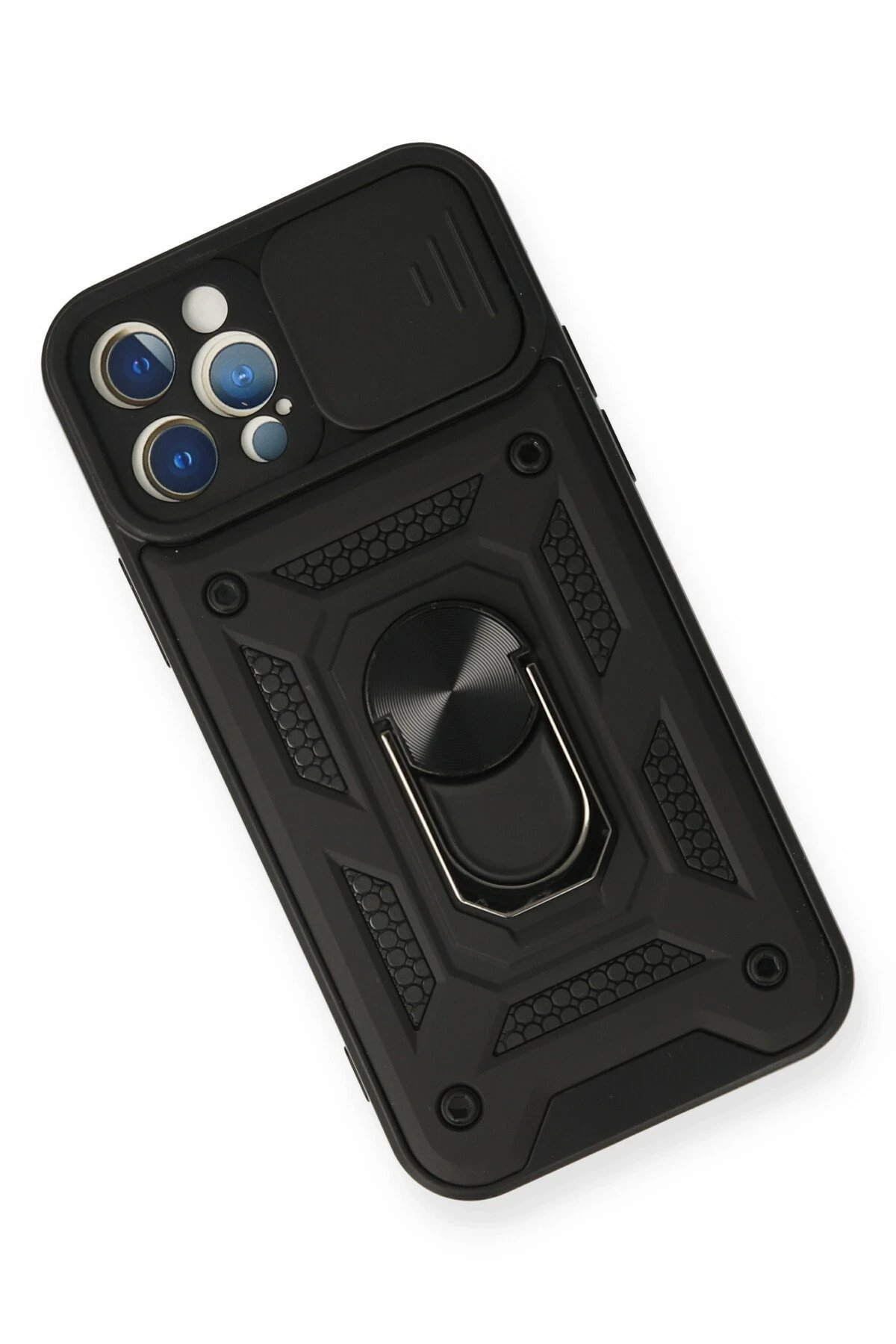 iPhone 12 Pro Kılıf Pars Lens Yüzüklü Silikon - Siyah-(5796)
