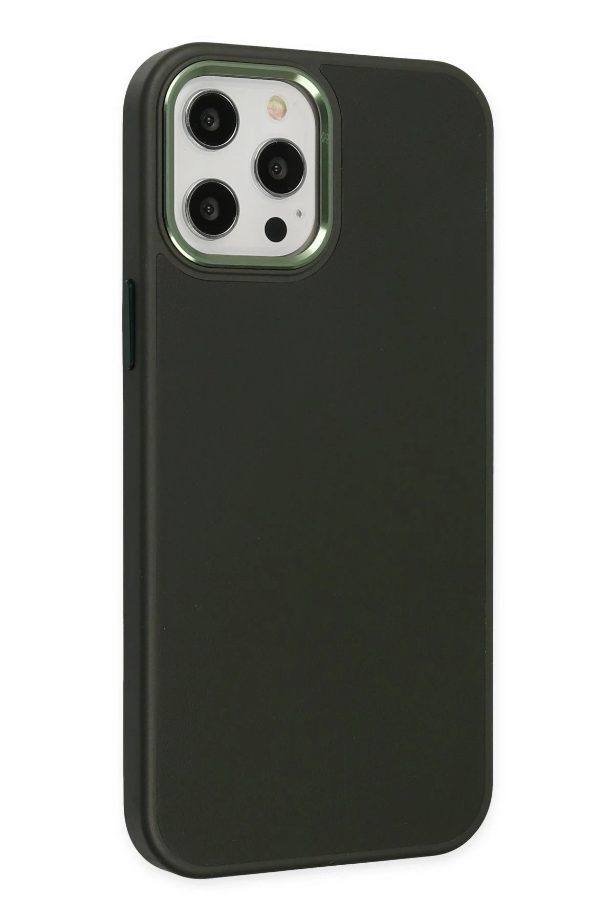 iPhone 12 Pro Max Kılıf Asya Deri Silikon - Koyu Yeşil-(5796)