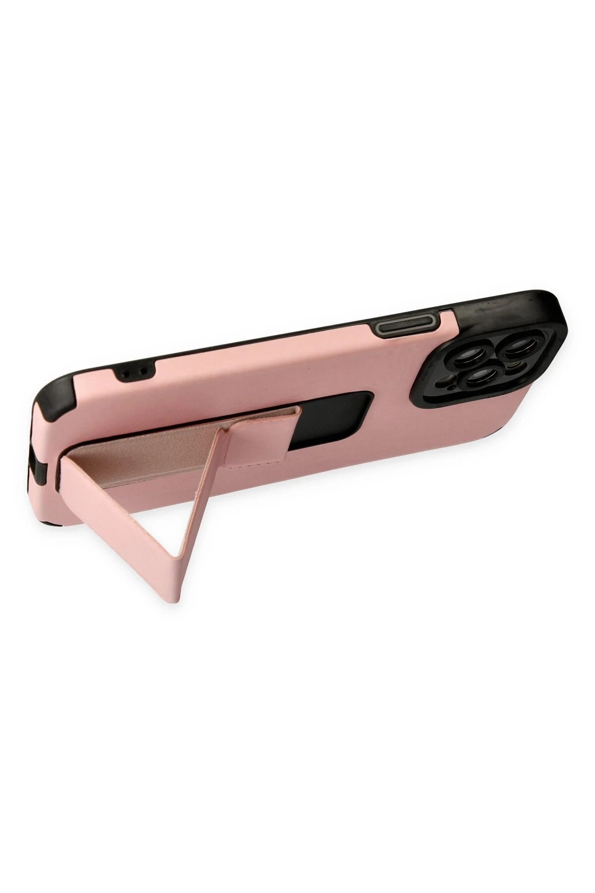 iPhone 12 Pro Max Kılıf Mega Standlı Silikon - Pudra-(5796)