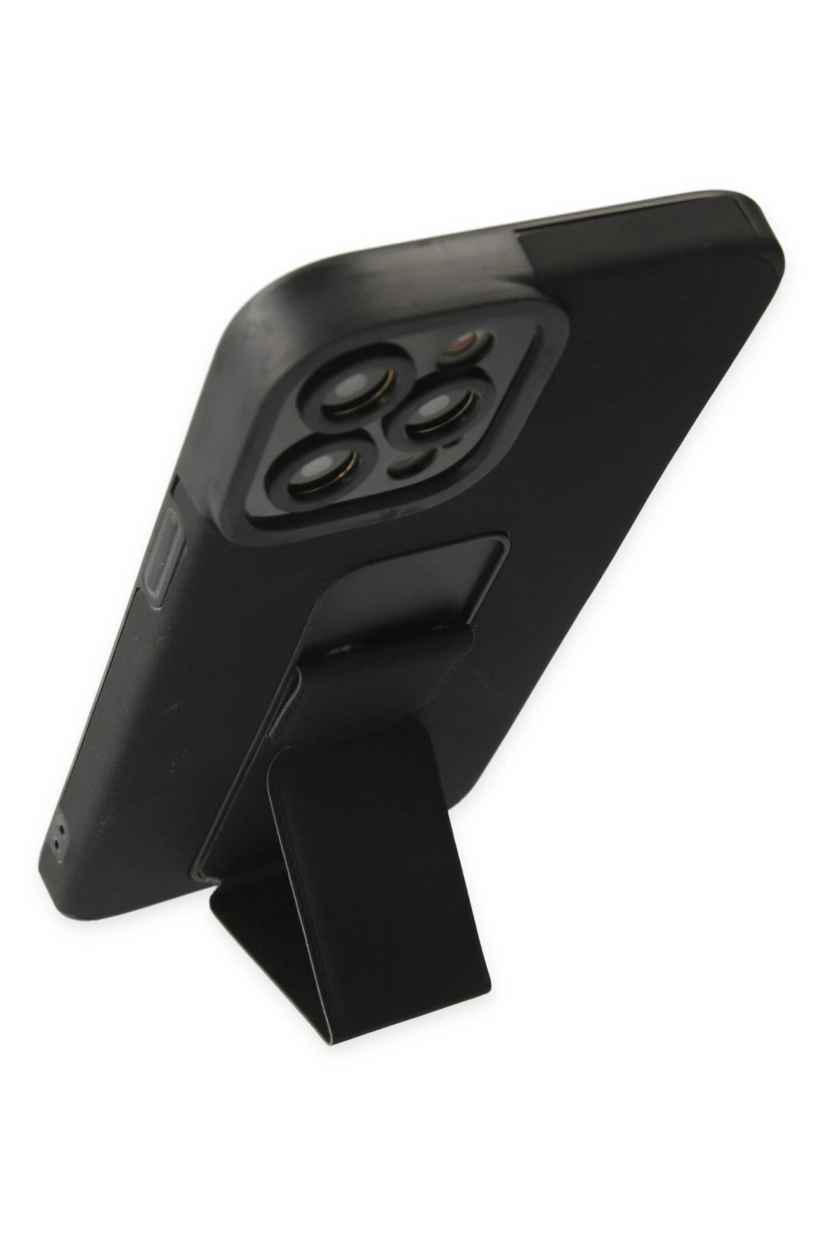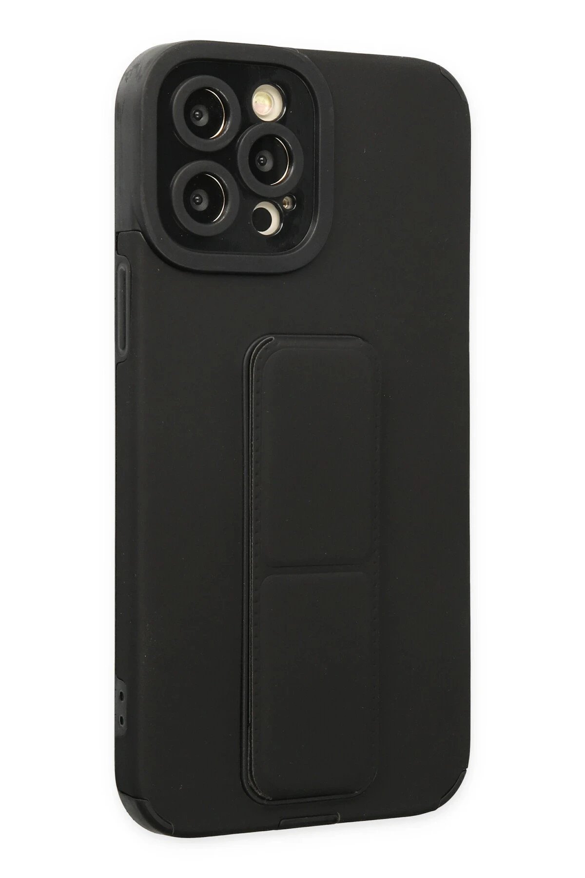 iPhone 12 Pro Max Kılıf Mega Standlı Silikon - Siyah-(5796)