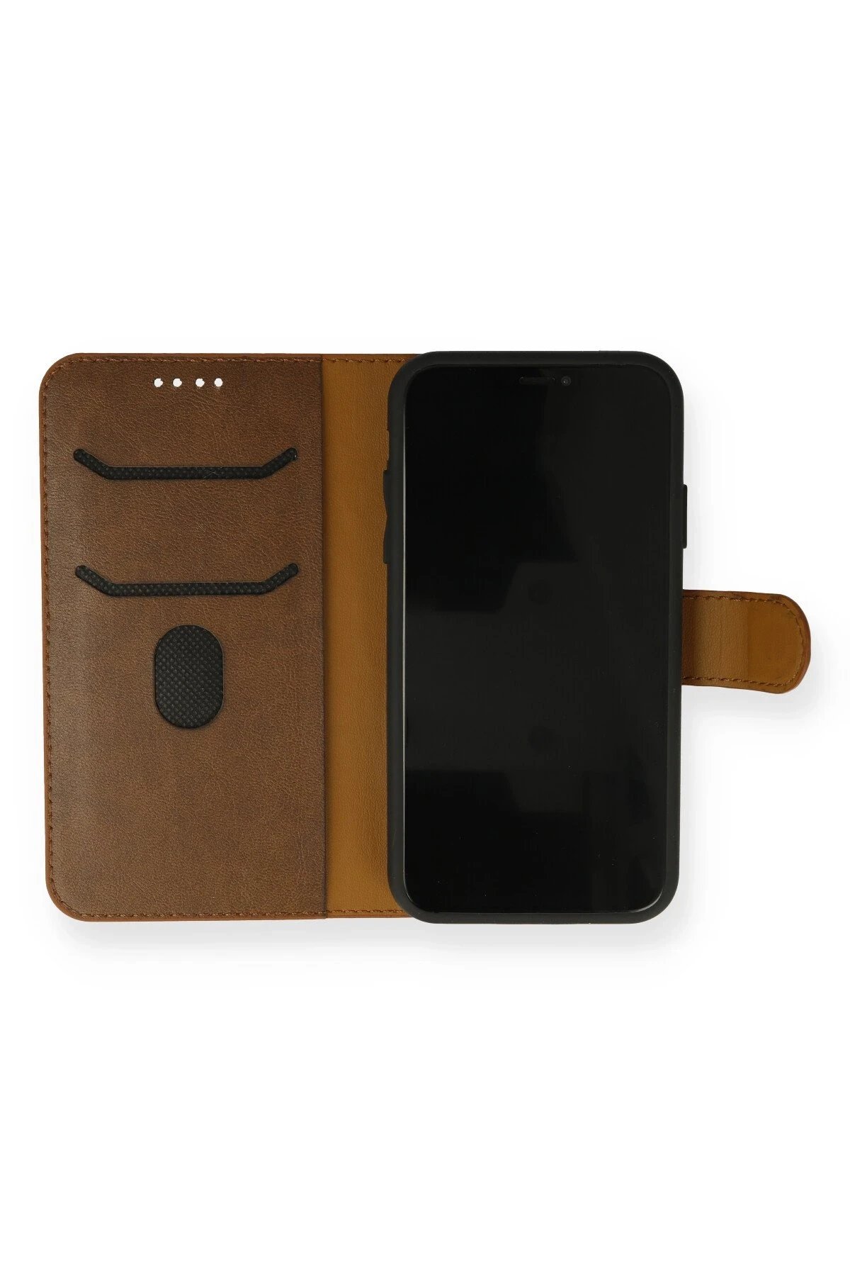 iPhone 13 Mini Kılıf Trend S Plus Kapaklı Kılıf - Taba-(5796)
