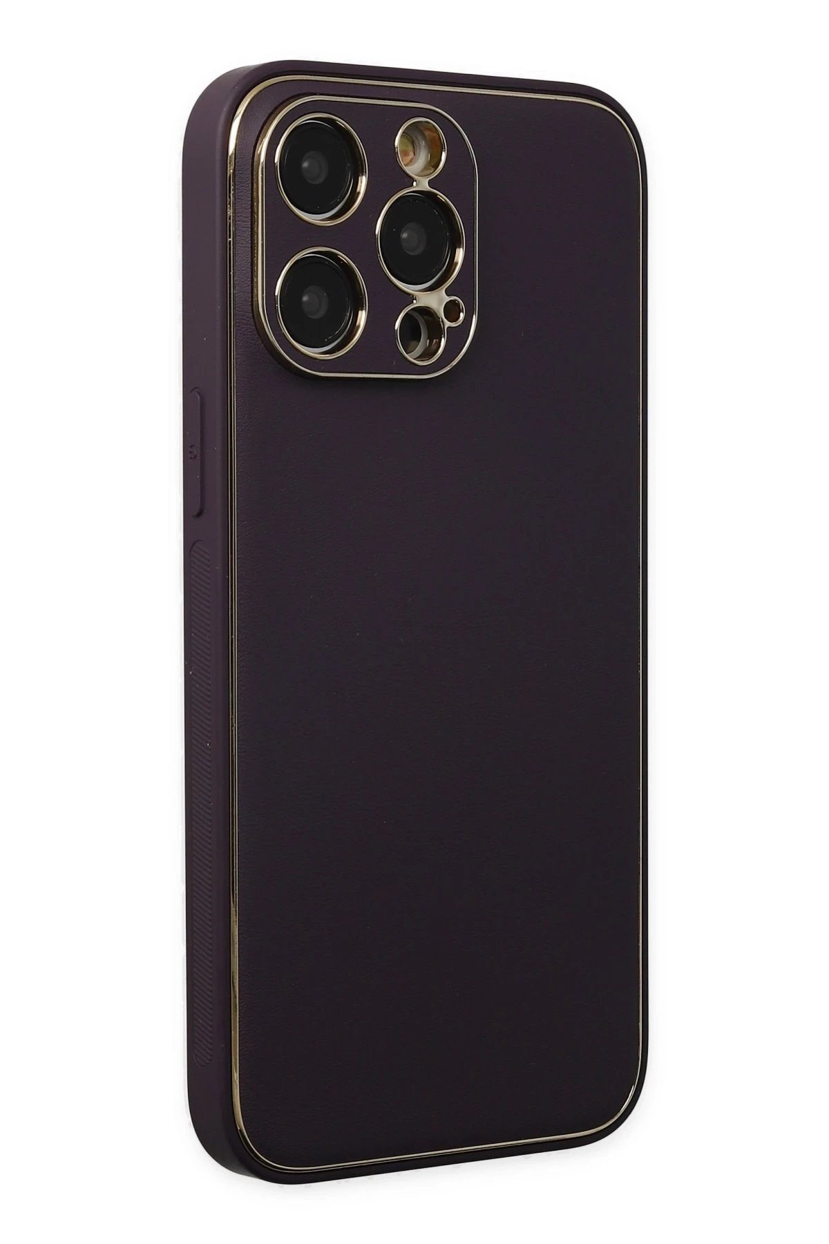 iPhone 13 Pro Kılıf Coco Deri Silikon Kapak - Derin Mor-(5796)