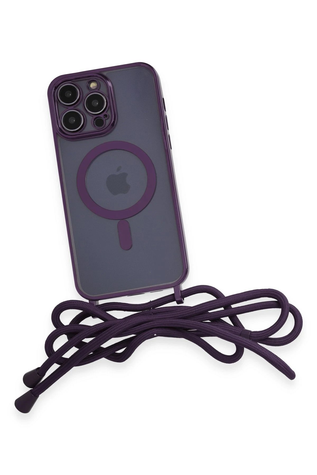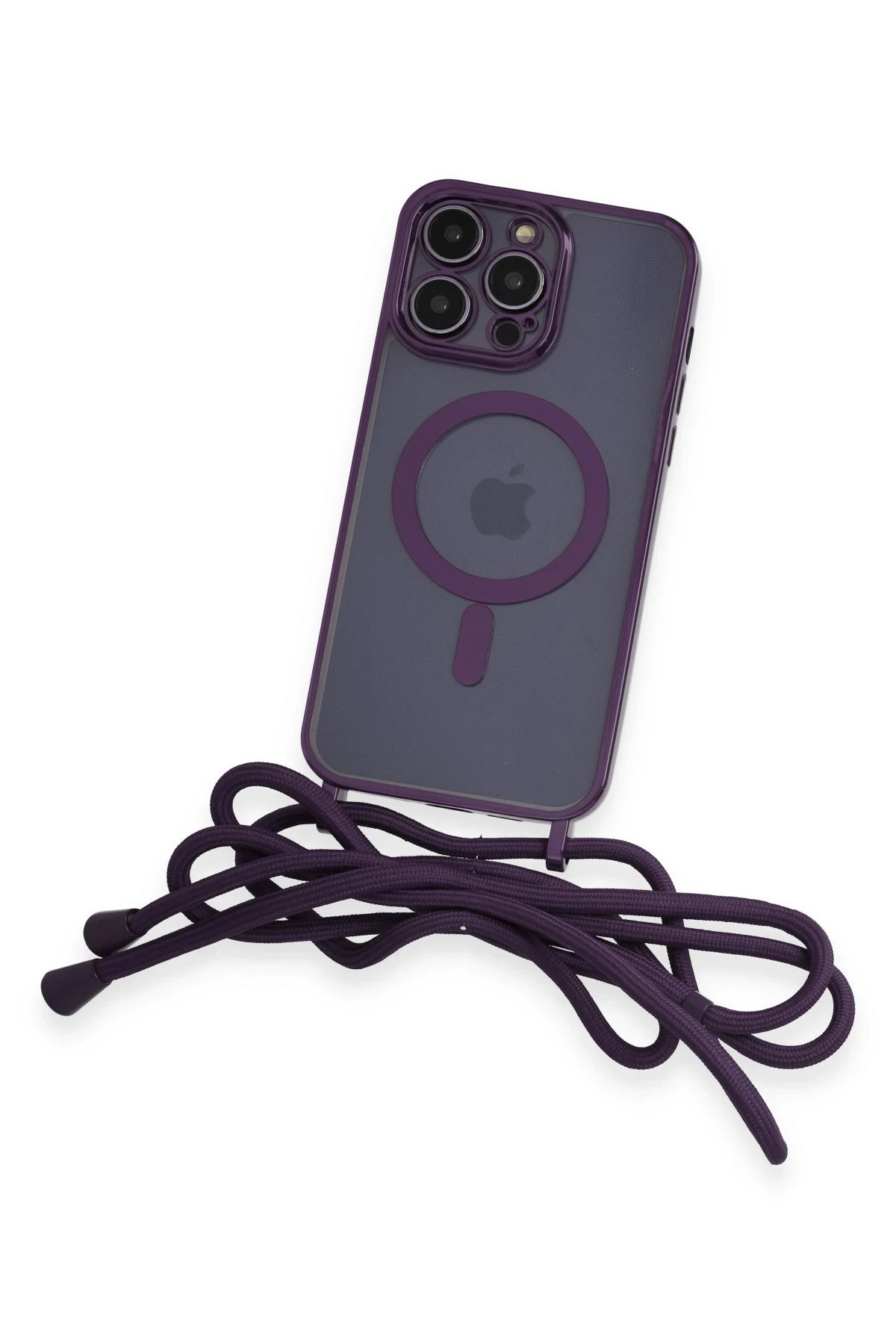 iPhone 13 Pro Kılıf Divo Lazer Askılı Magsafe Kapak - Derin Mor-(5796)