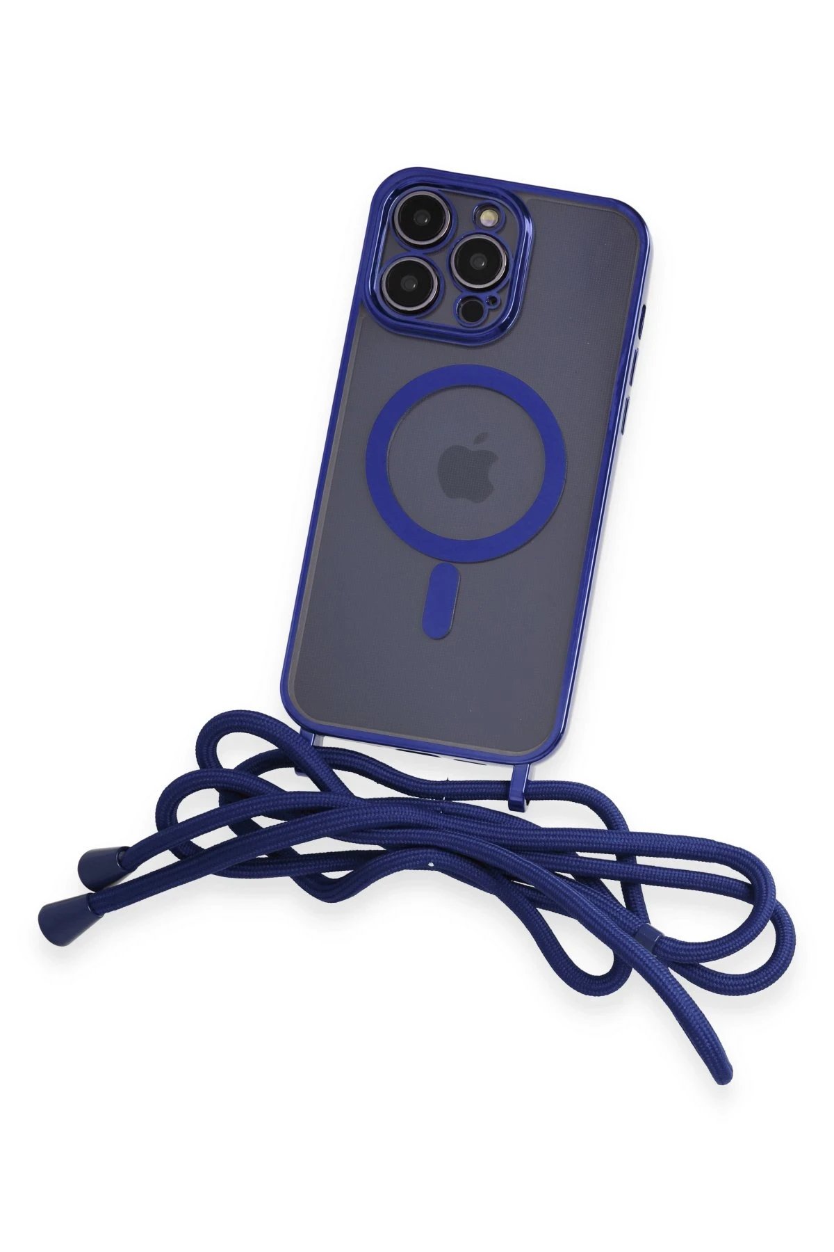 iPhone 13 Pro Kılıf Divo Lazer Askılı Magsafe Kapak - Mavi-(5796)
