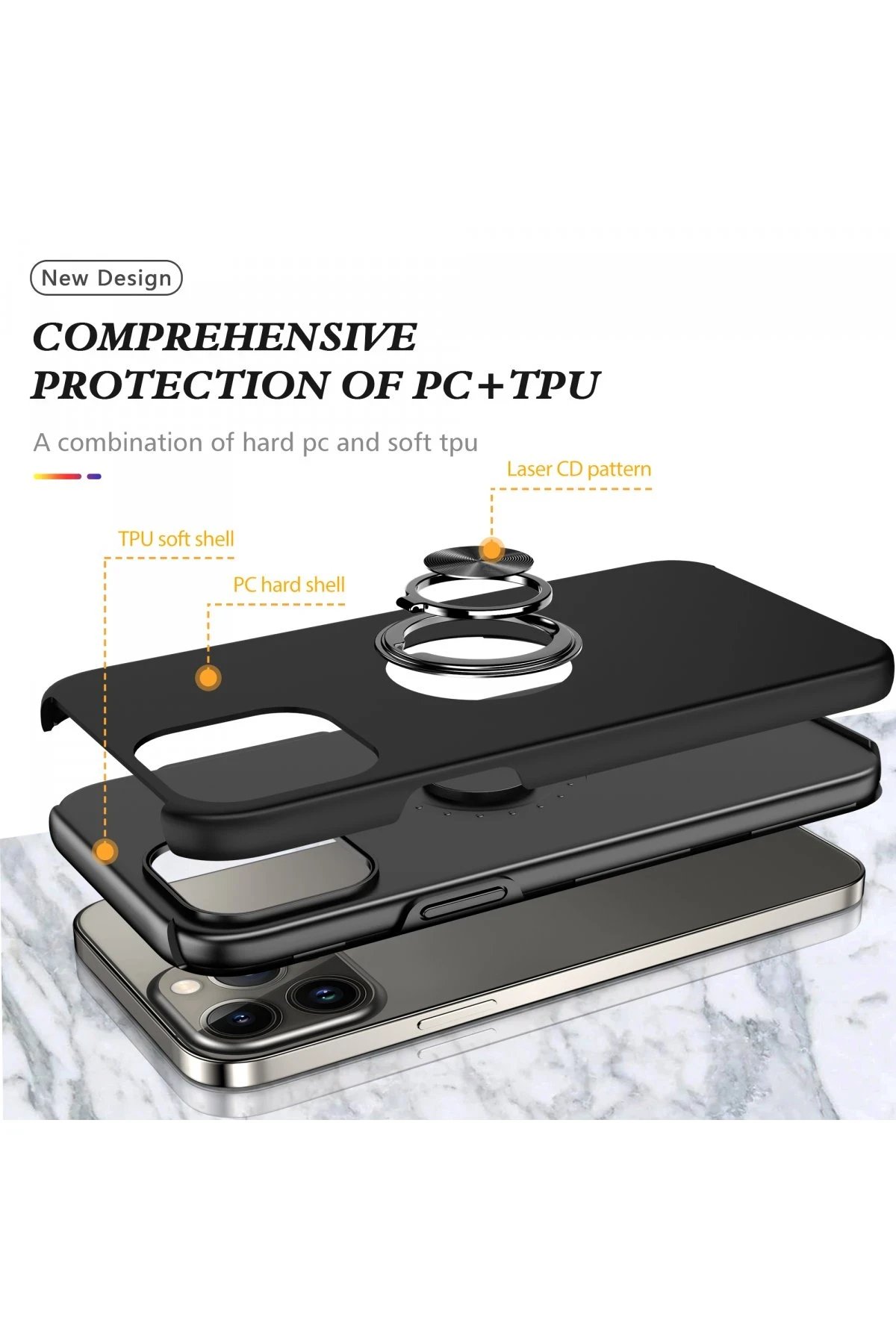 iPhone 13 Pro Max Kılıf Elit Yüzüklü Kapak - Siyah-(5796)