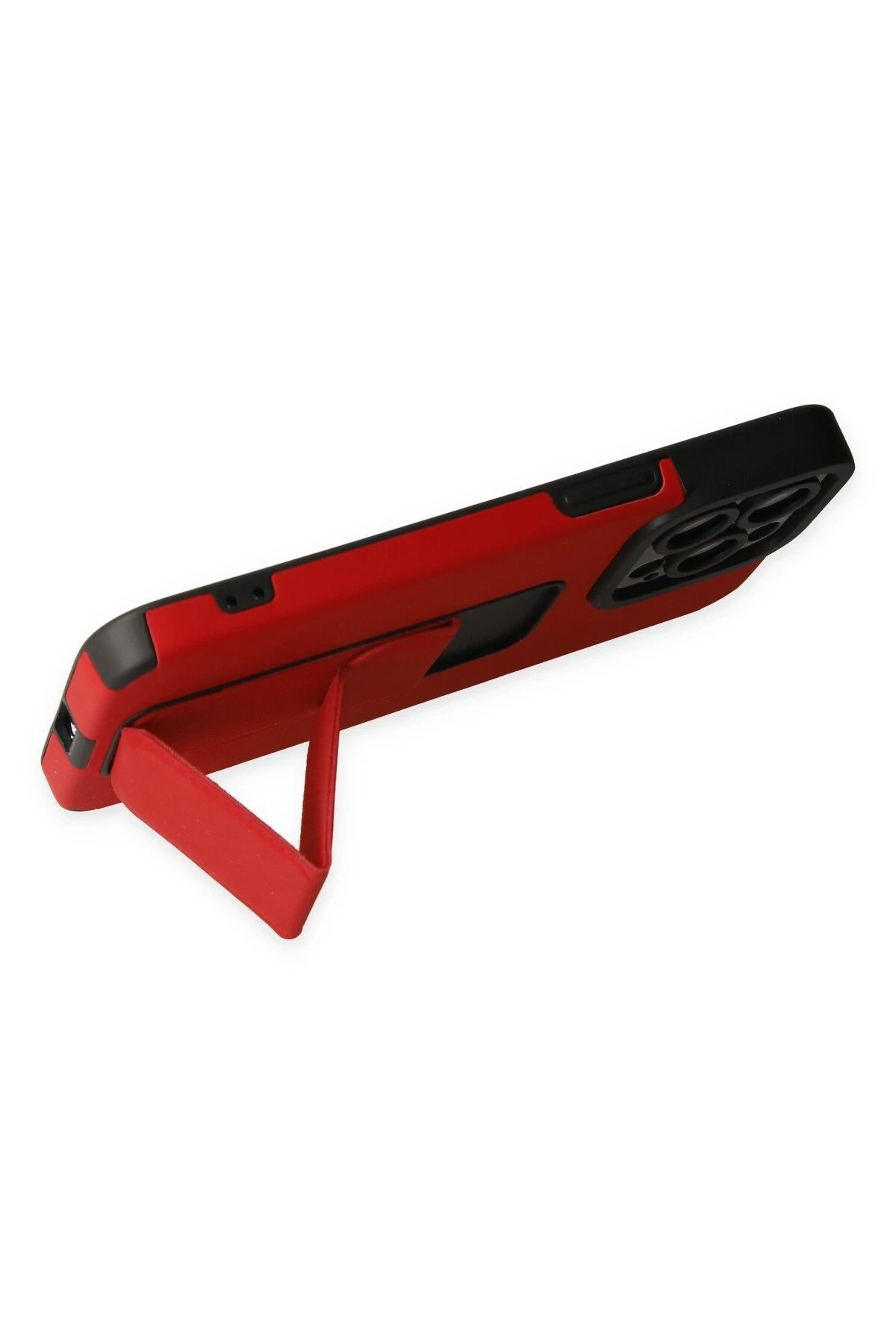 iPhone 13 Pro Max Kılıf Mega Standlı Silikon - Kırmızı-(5796)