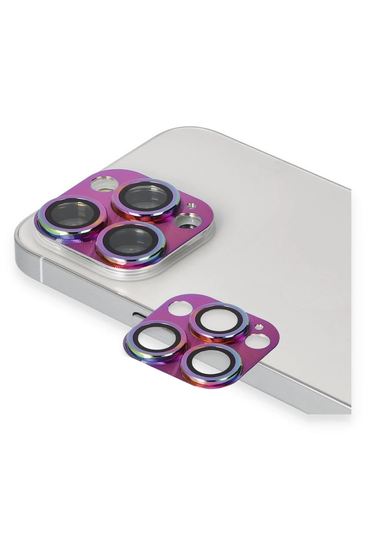 iPhone 13 Pro Max Pers Alüminyum Kamera Lens - Rainbow-(5796)