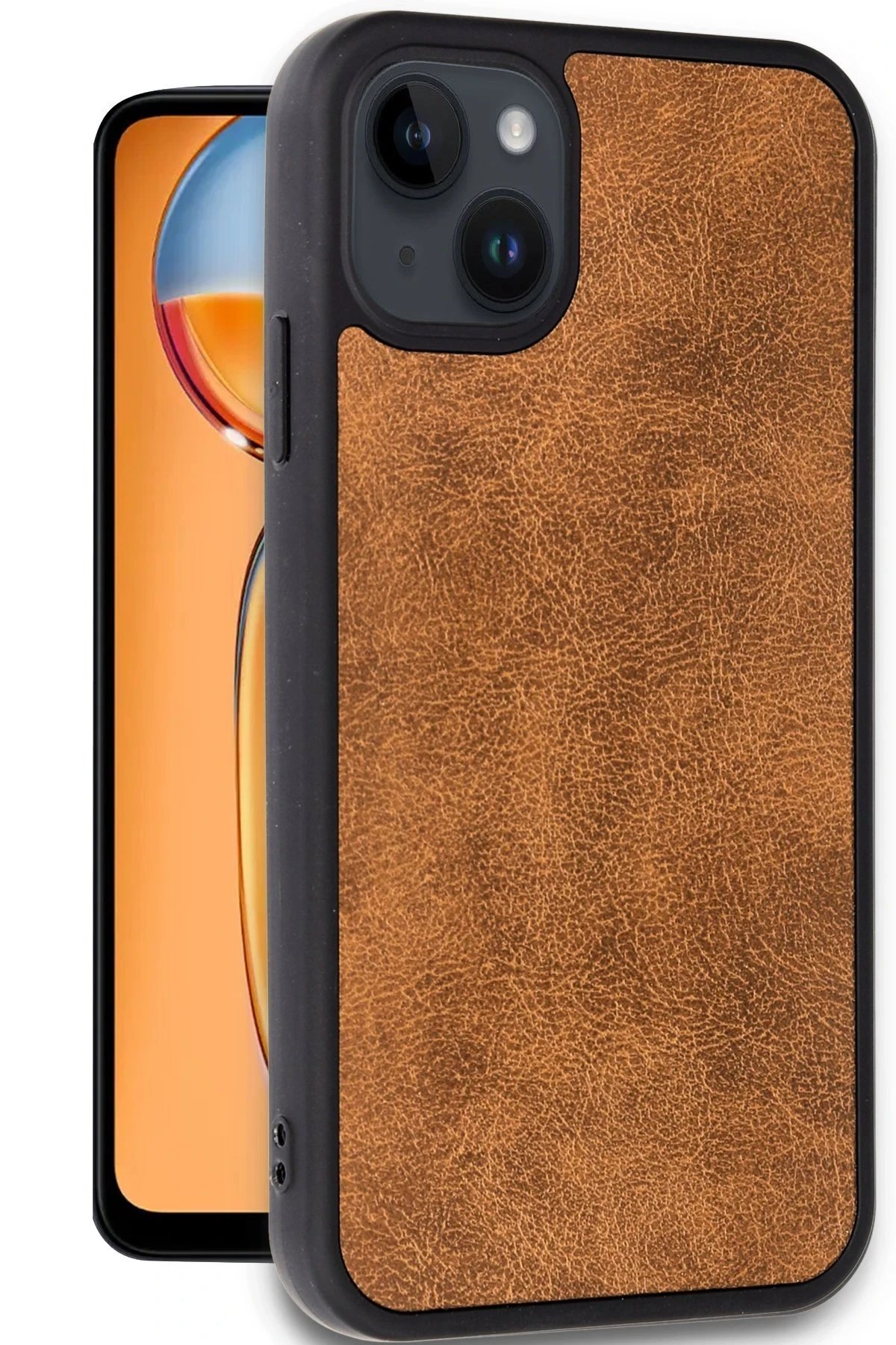 iPhone 14 Kılıf Aras Deri Kapak - Taba-(5796)