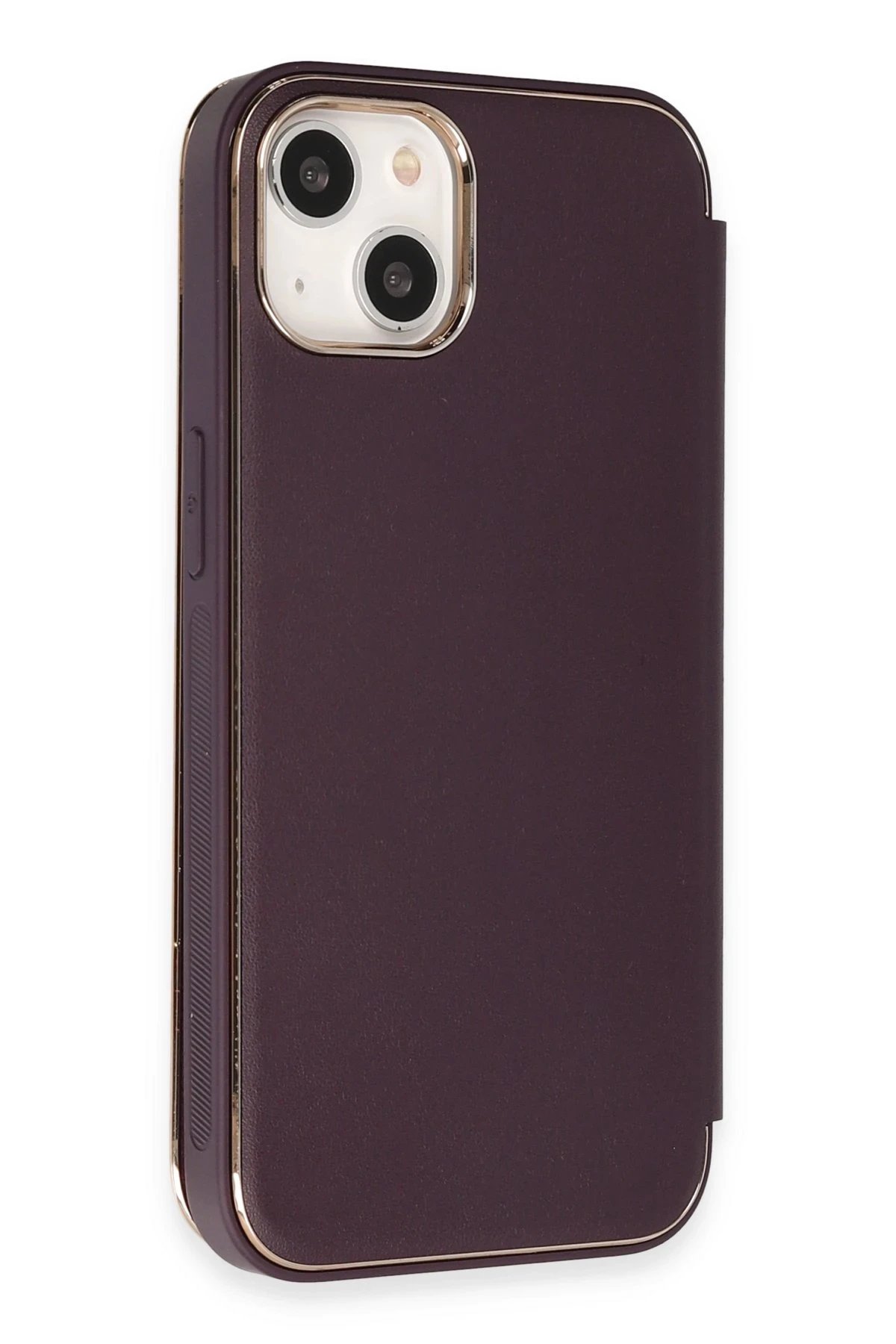 iPhone 14 Kılıf Dolpin Kapaklı - Derin Mor-(5796)