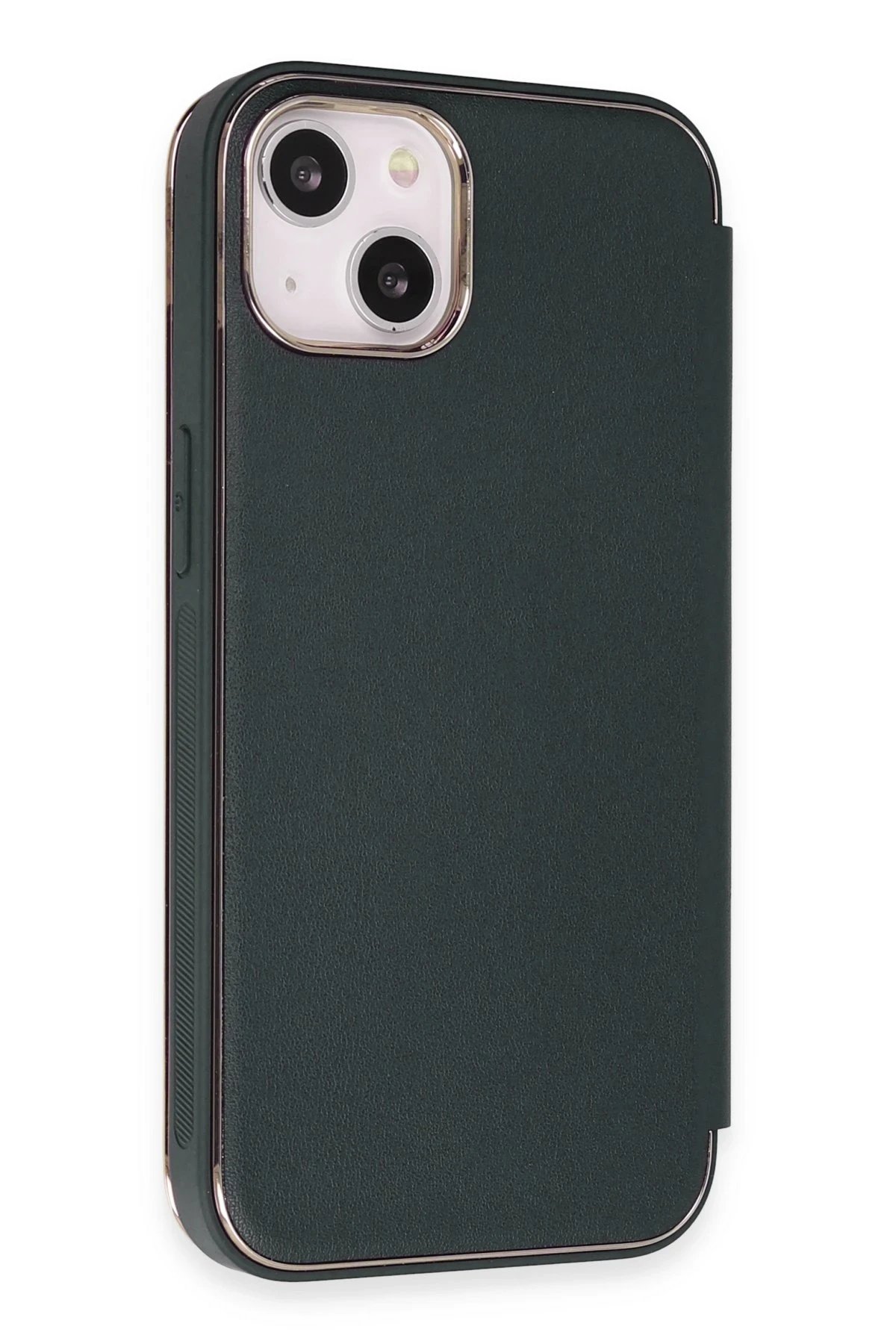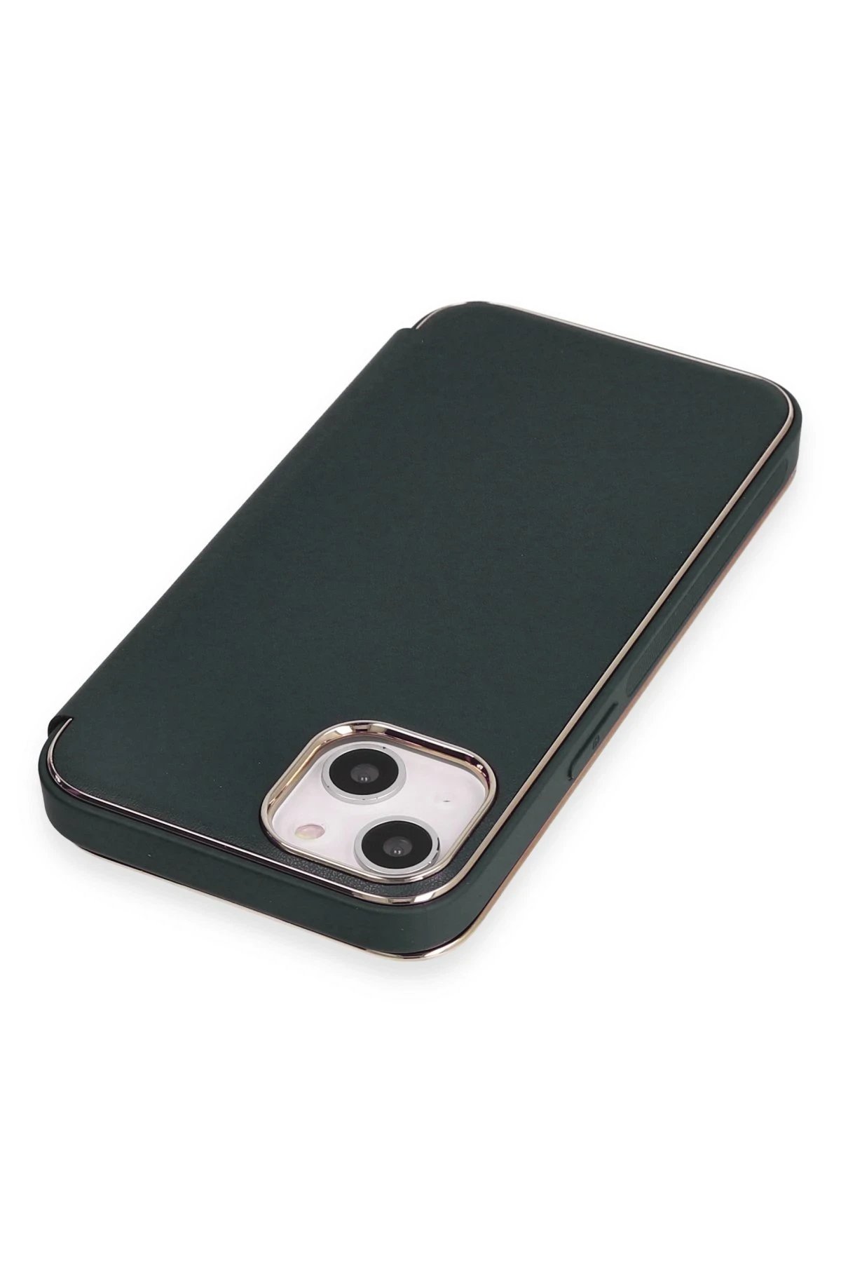 iPhone 14 Kılıf Dolpin Kapaklı - Koyu Yeşil-(5796)