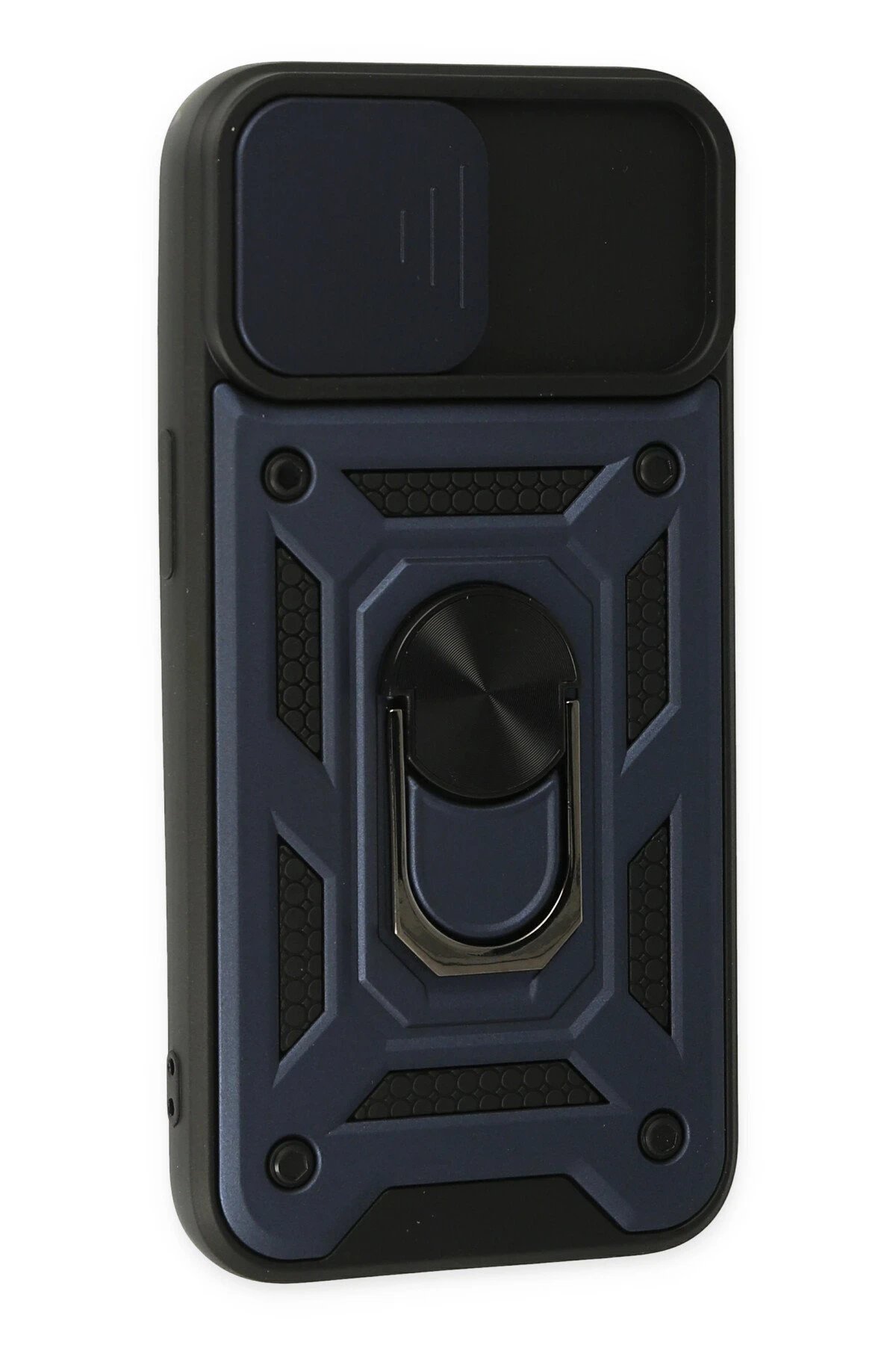 iPhone 14 Kılıf Pars Lens Yüzüklü Silikon - Lacivert-(5796)