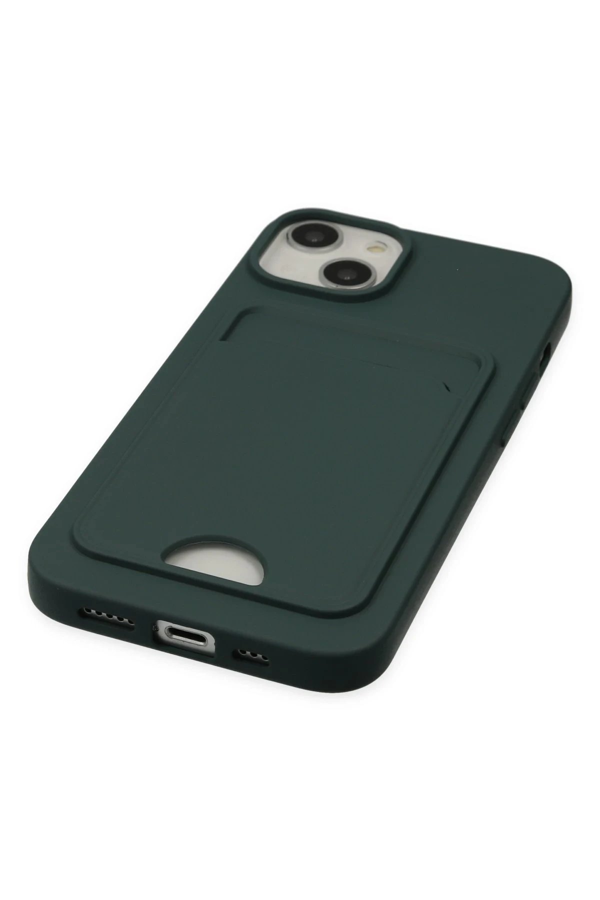 iPhone 14 Plus Kılıf Kelvin Kartvizitli Silikon - Koyu Yeşil-(5796)
