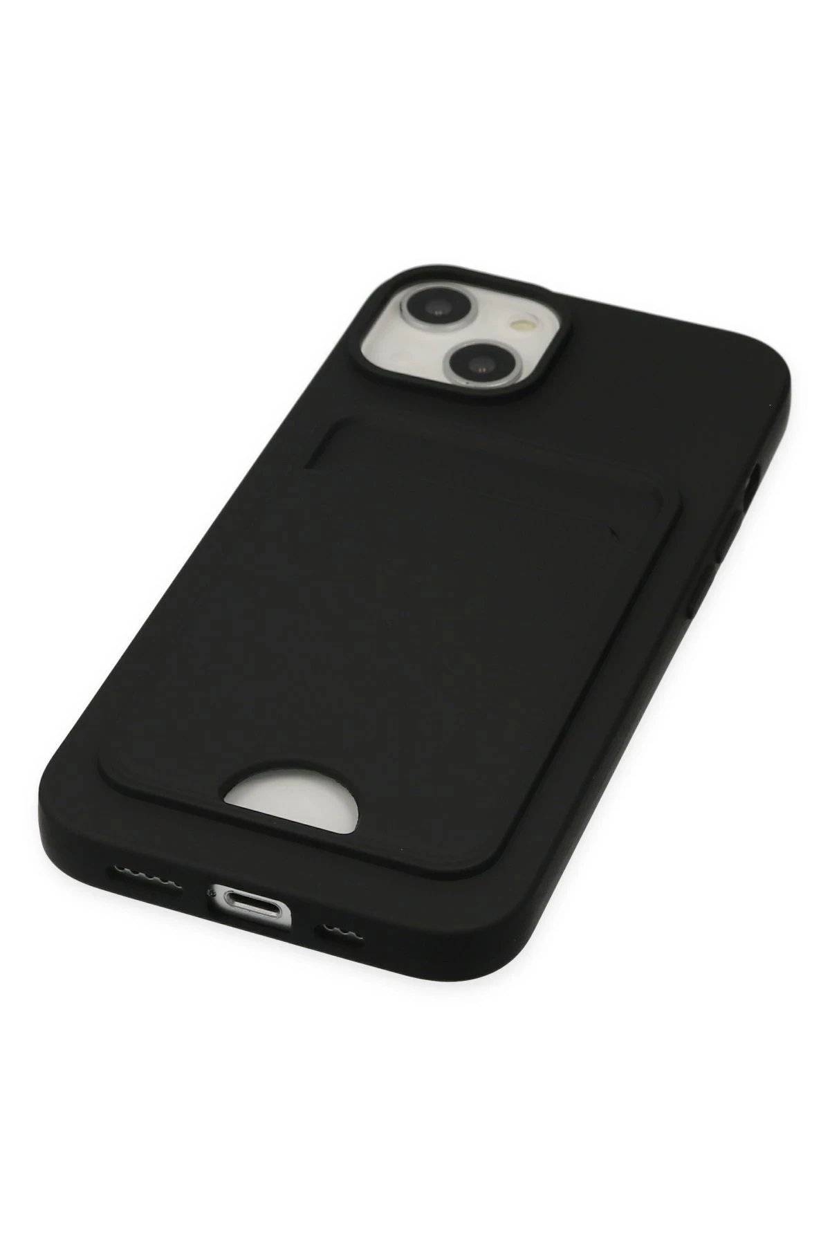iPhone 14 Plus Kılıf Kelvin Kartvizitli Silikon - Siyah-(5796)