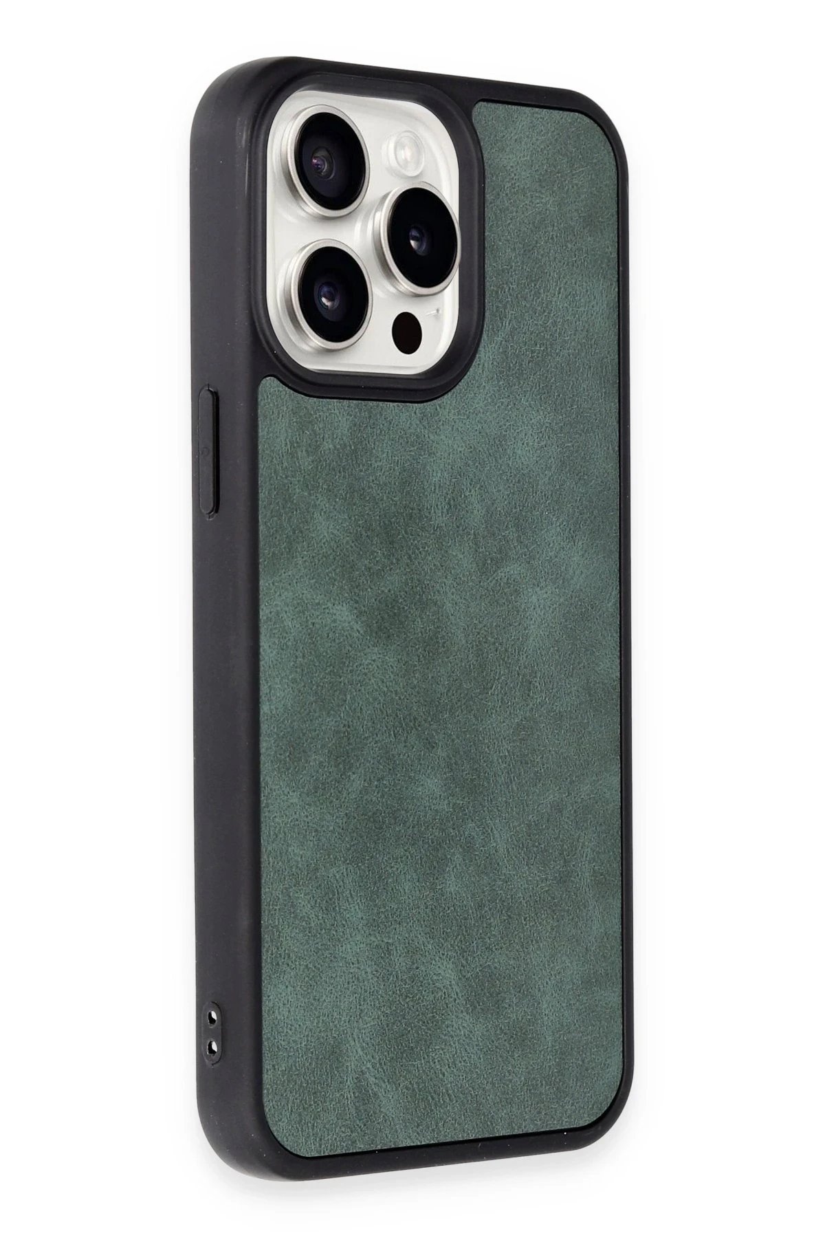 iPhone 14 Pro Kılıf Aras Deri Kapak - Koyu Yeşil-(5796)
