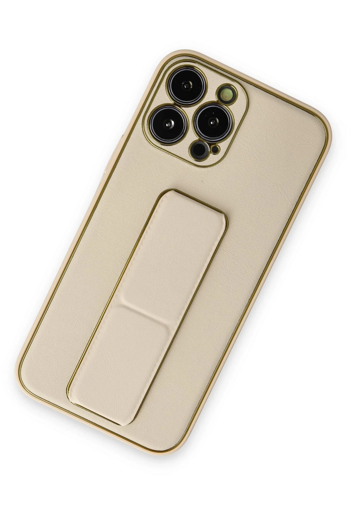 iPhone 14 Pro Kılıf Coco Deri Standlı Kapak - Gold-(5796)